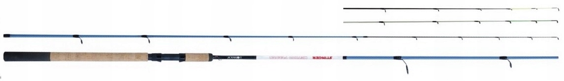 Серія вудилищ Stinger виготовлена з вуглецевого волокна IM6, оснащена направляючими TS з практичною корково-неопреновою ручкою. Стингери легкі і швидкі, відрізняються цікавим синьо-перламутровим забарвленням. Спінінги розроблені для лову найпопулярніших видів риб: окуня, щуки та судака. Для рибалок на білу рибу ми рекомендуємо матчеві вудки, фідери та пікери. Цього року ці серії були розширені за рахунок вудилищ Method Feeder і нових моделей Feeder і Picker. Додатковою перевагою є можливість придбання наборів запасних наконечників.