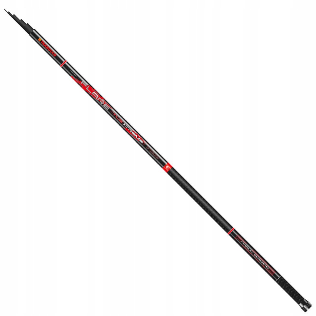 Trabucco Flare TLS Extreme — топове вудилище з елегантним зовнішнім виглядом і малою вагою, виготовлене з карбону останнього покоління SHMR. З'єднання елементів посилені надстійкими нановолокнами. Ідеально підходить для риболовлі на плотах на проточних водах або озерах. Бланк тонкий, має невеликий діаметр, але при цьому зберігає великий запас потужності, маючи прогресивно-параболічну дію. Бланк покритий спеціальним шаром «Sensi Touch», який полегшує очищення після риболовлі. Міцний наконечник з вуглецевого волокна є порожнистим, що забезпечує високу чутливість, тому рибалка може виявити навіть найдрібніші деталі. Кришка в основі ручки алюмінієва з гумовим покриттям.