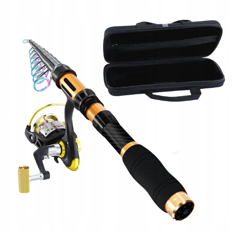- У набір входить: 1 вудка. 1 х рибальська котушка. 1 х рибальський футляр. 1 x нейлонова волосінь. 2 х рибальські поплавці. Телескопічна конструкція для риболовлі є портативною, а закриту конструкцію зручно носити.