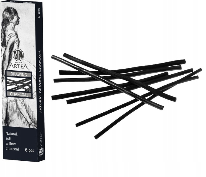 Натуральний малюнок вугіллям artea 6шт 6-8мм. М'яке та натуральне вербове вугілля для малювання та ескізів на різних поверхнях. Доступний у двох різних діаметрах: 6-8 мм і 3-6 мм. Готові роботи необхідно закріпити фіксатором.