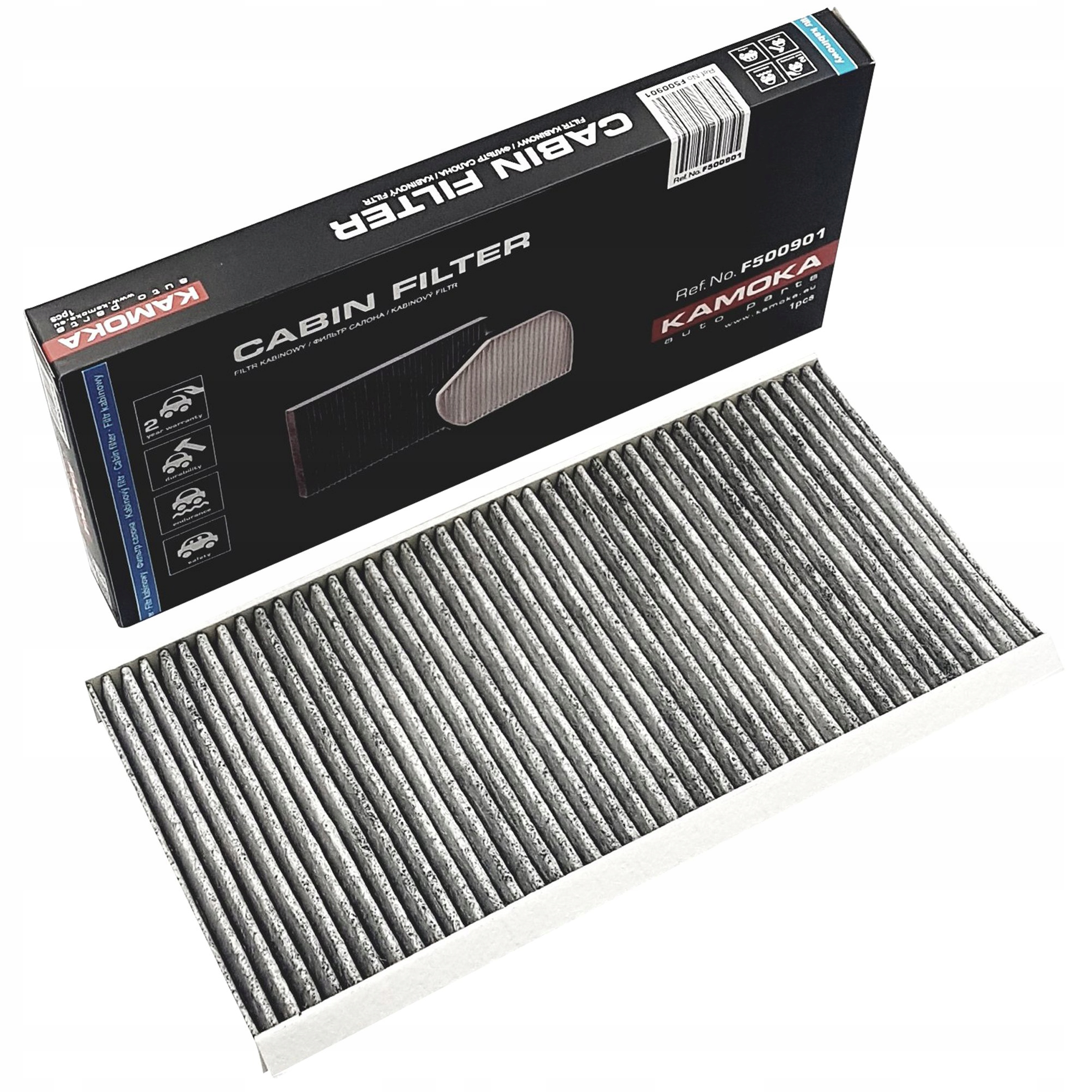 Крім затримки дрібних частинок розміром до 0,5 мкм, фільтри KAMOKA також нейтралізують шкідливі гази та затримують бактерії, що покращує захист здоров'я та запобігає проникненню неприємних запахів у салон автомобіля.