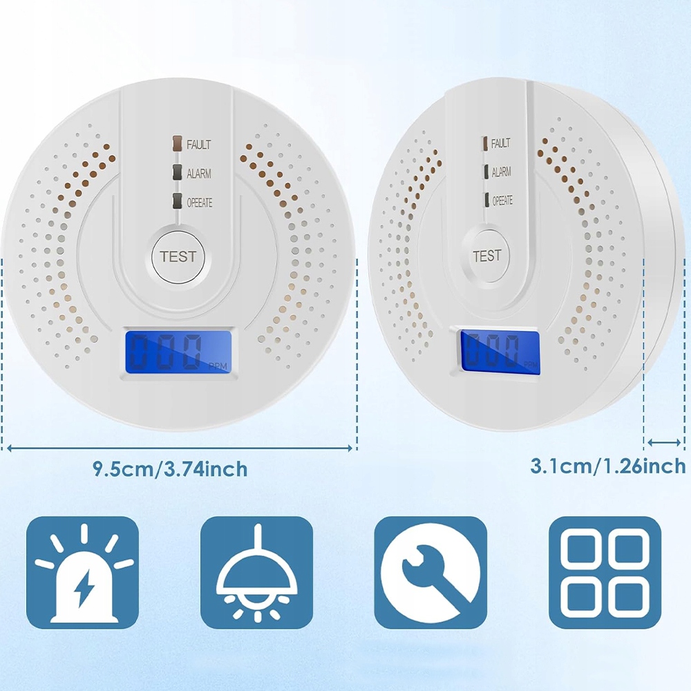 -Якщо час попередить вас про небезпечний рівень оксиду вуглецю з гучною тривогою та миготливим червоним світлодіодом. 24-годинний захист, даючи спокій, що ви завжди в безпеці.