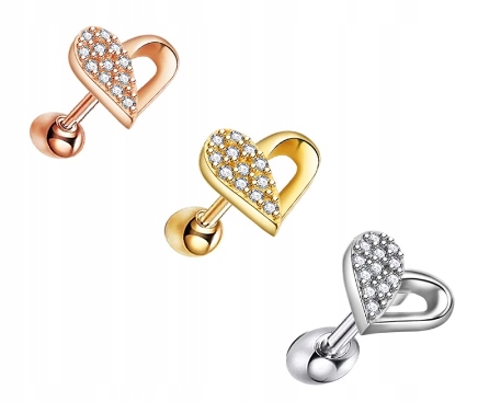 Вухо СЕРЕЖКА козелок хрящ СЕРЦЕ РОЖЕВЕ ЗОЛОТО.