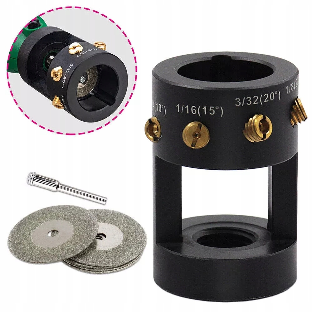 - з 4 путівниками, 0,04 (10 °), 1/16 (15 °), 3/32 (20 °) та 1/8 (22,5 °), ви можете відполірувати ідеальний кут, з точним контролем. 3/4-12. Інструмент у вашій роботі.
