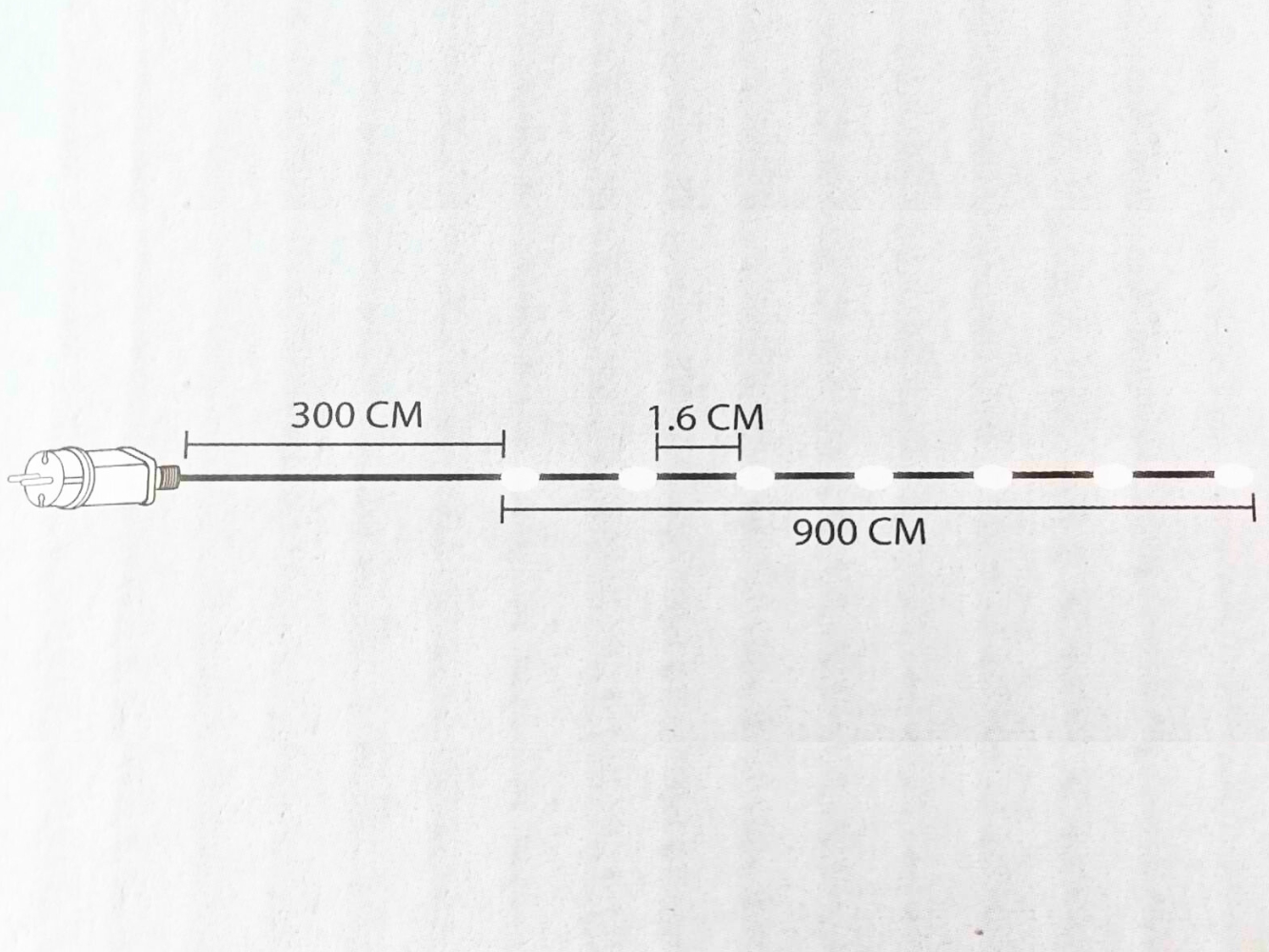 - Довжина: 900 см + 300 см кабель живлення