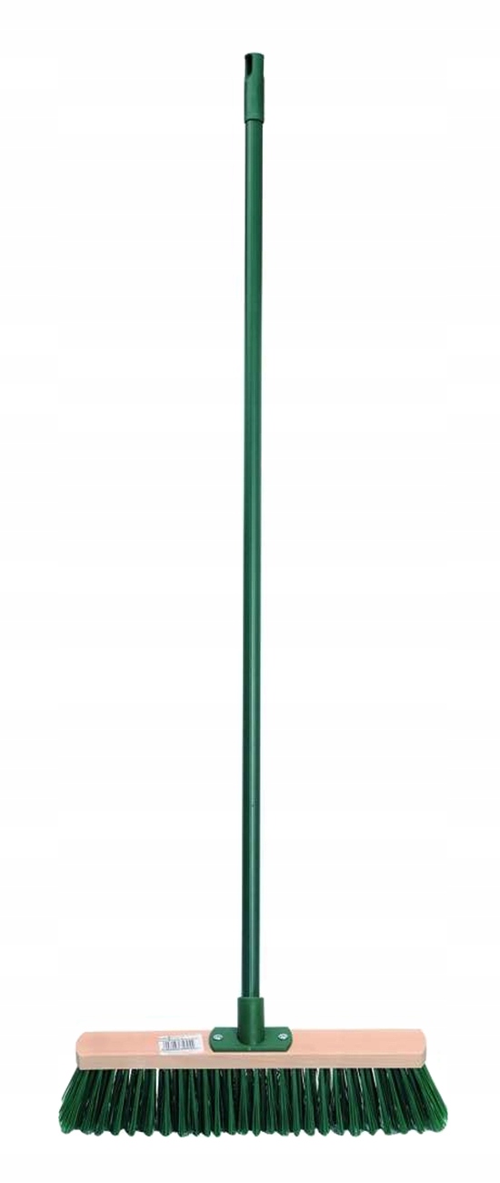вулична мітла з дерев’яним тілом у робочій частині, виготовленій з твердих пластикових щетинок. Встановіть на міцну нитку з міцним металевим валом з покритого шару пластику. Корисно для зовнішніх робіт з очищення, наприклад Для підмітання листя, піску, пилу, свіжого снігу тощо