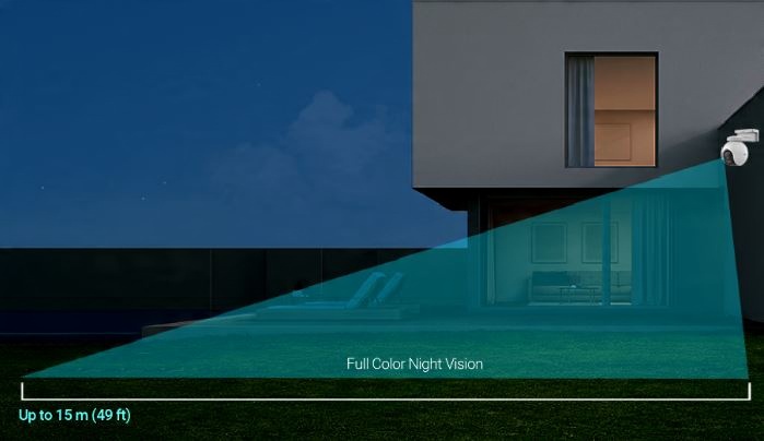 ✅ Повна видимість вночі в кольорі завдяки надчутливому датчику та освітлювачу білого світла