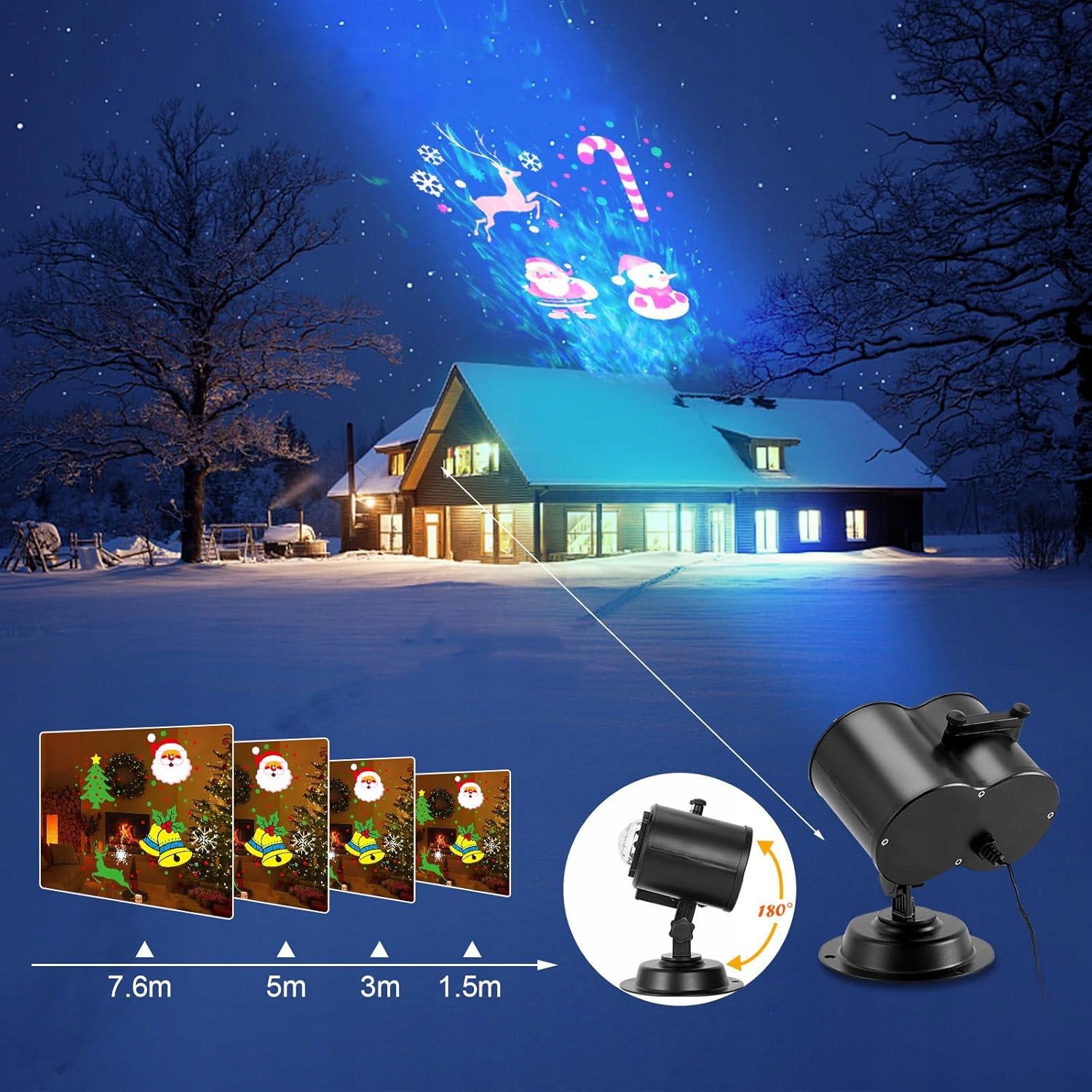 ✨【2 в 1 з ефектом хвилі води та зовнішній світлодіодний різдвяний проектор】