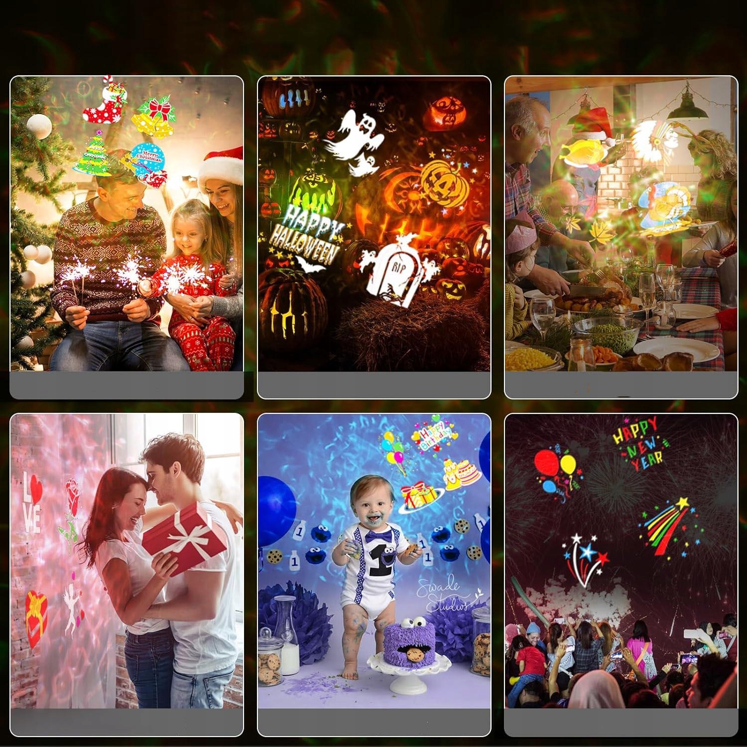 Багаті візерунки на Різдво, Хеллоуїн, день народження, карнавал, День подяки, День святого Валентина, весілля, Новий рік, День сміху тощо. Ви можете використовувати пульт дистанційного керування, щоб змінити бажаний ефект. Маленький проекційний світильник може створювати цікаву атмосферу на всіх фестивалях цілий рік.