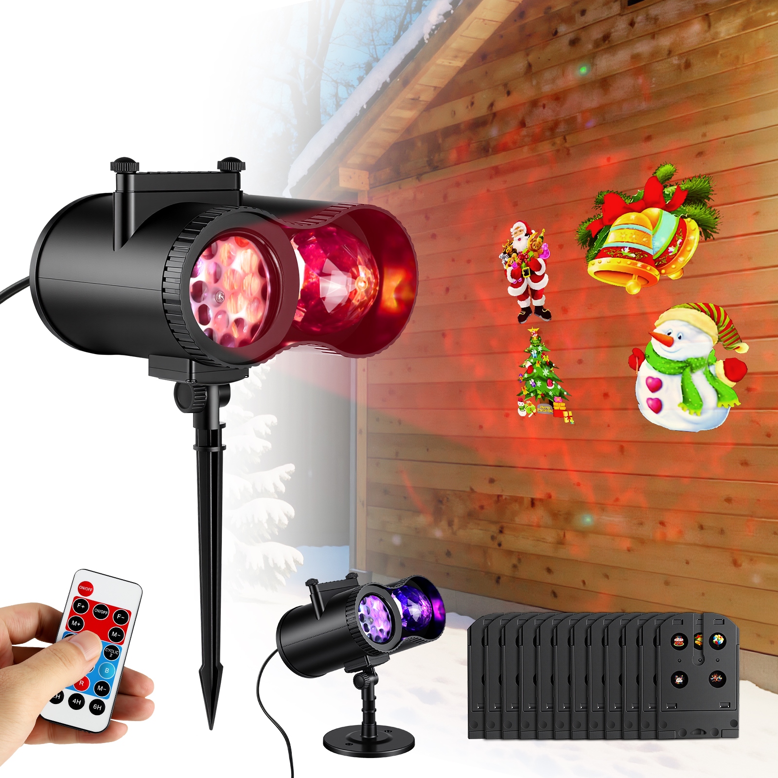 Вуличний світлодіодний проектор з 12 слайдами Пульт дистанційного керування Снігозахисний для відпустки