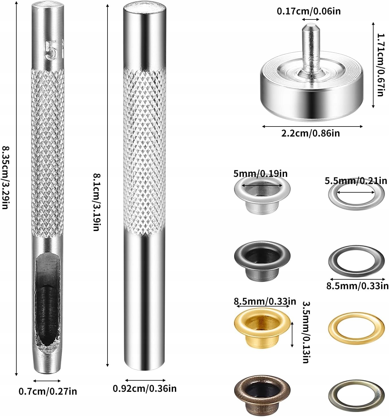 Набір містить 3 необхідні інструменти для простого встановлення люверсів: