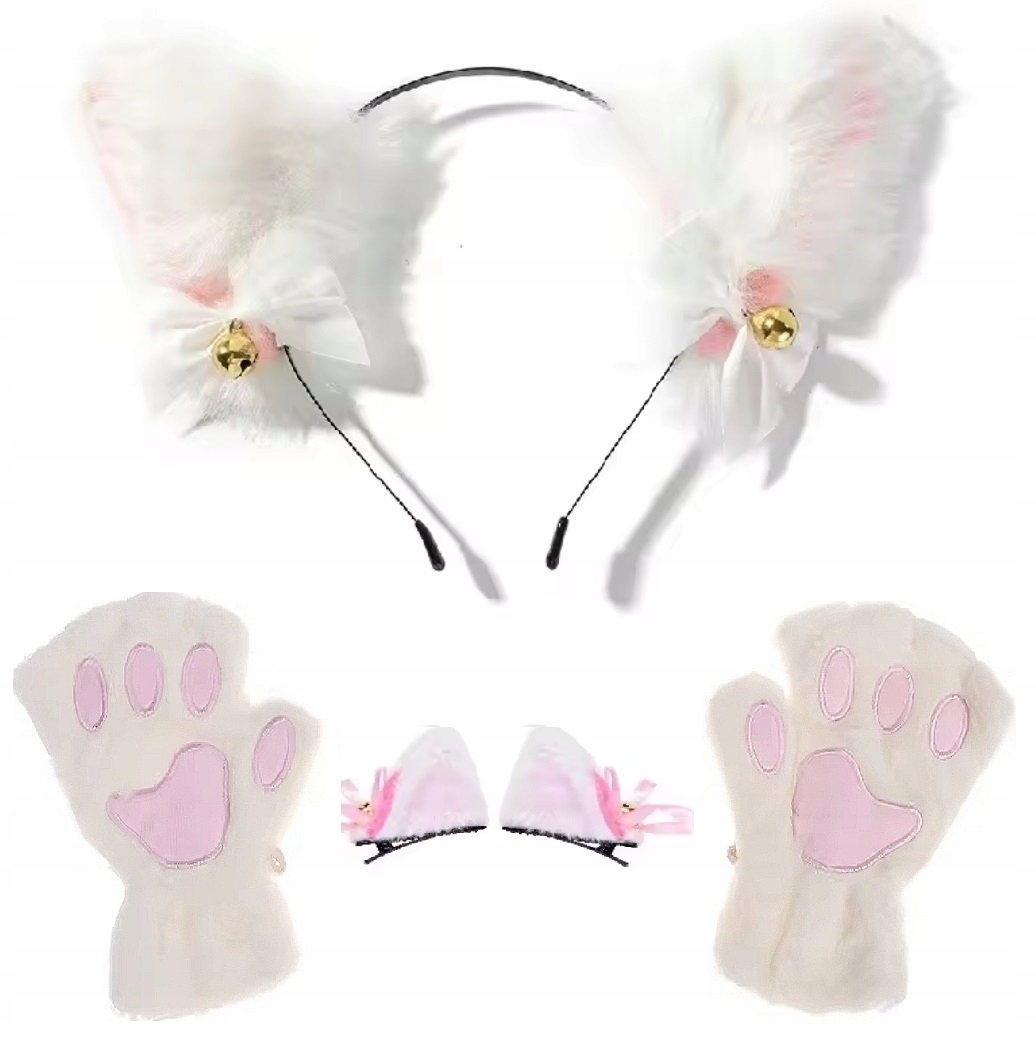 Вушні вуха костюм костюм білі рукавички набори манжети кішка маскування pl24