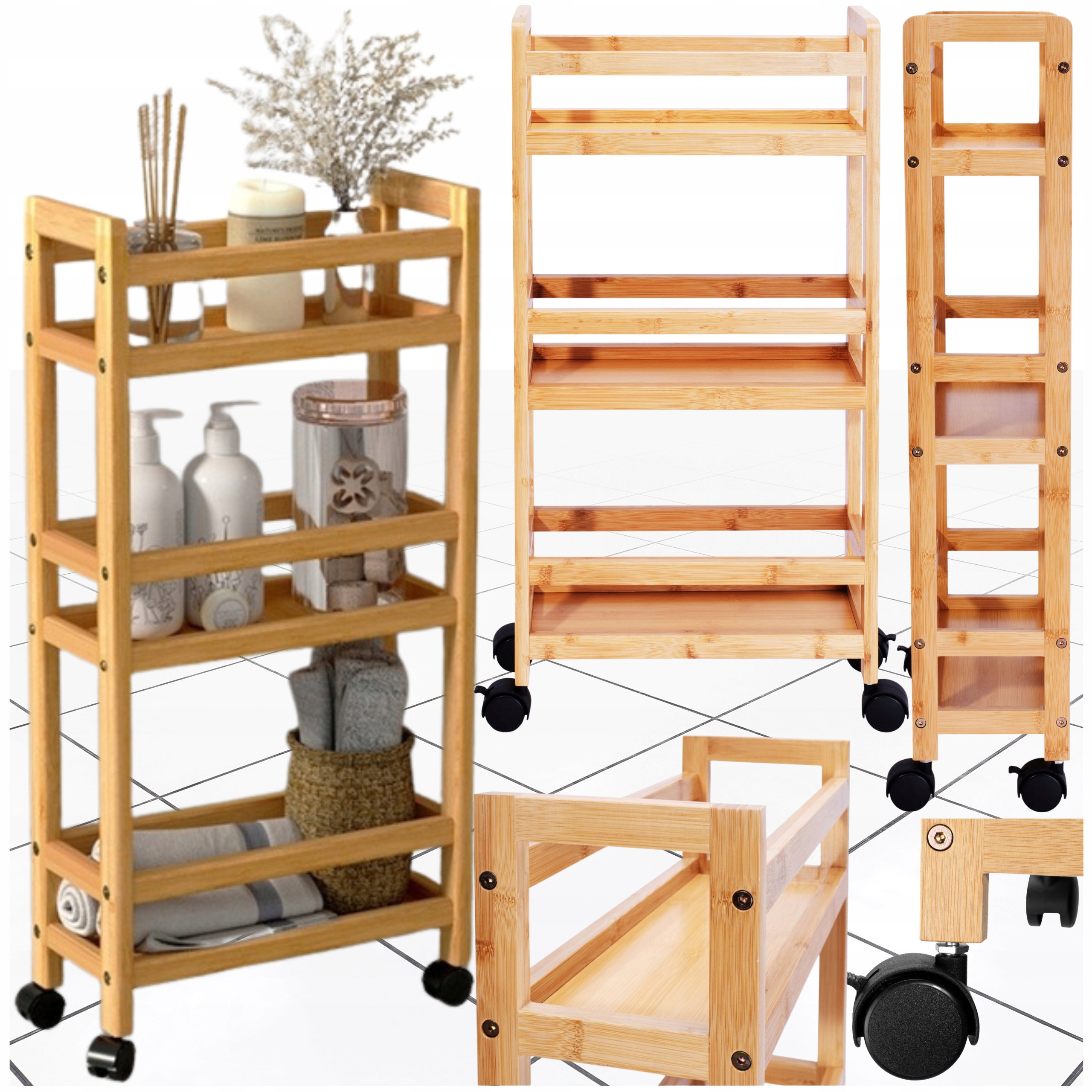 Бамбукова полиця на колесах — мобільна, вузька та функціональна