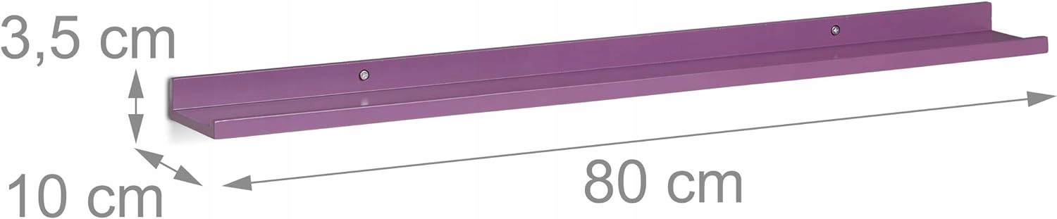 Вузька підвісна полиця Relaxdays , МДФ, 3,5 х 80 х 10 см, фіолетовий
