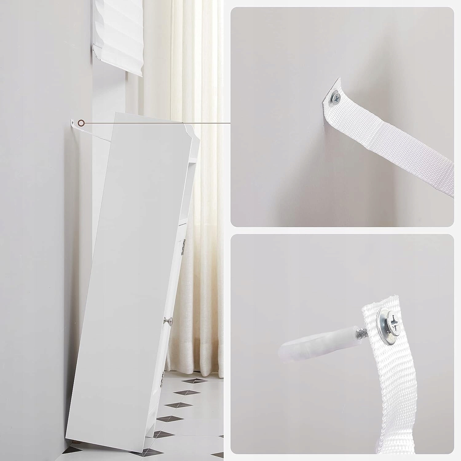 - Прикріпіть меблі до стіни за допомогою виробу, що входить до комплекту, щоб запобігти перекиданню. Продукт лише для домашнього використання.