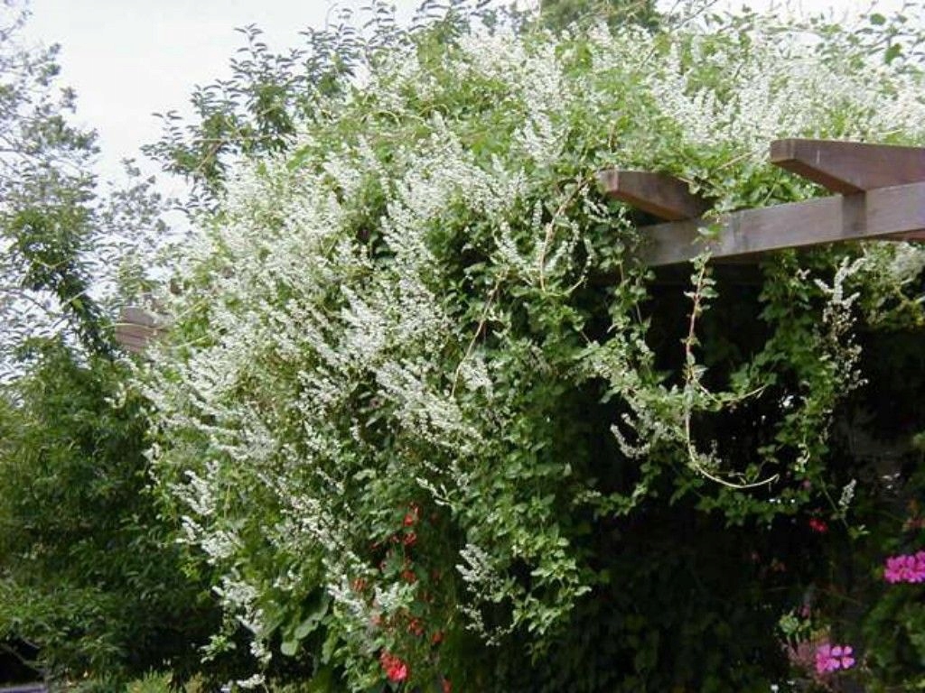 вузол Аберта - Найшвидше зростає в нашому кліматі. Він росте до 7 м довжиною протягом 1 року. Повзання з родини нотвітів Polygonaceae, в природному стані, зустрічається в Західному Китаї та Тибеті. Він виростає на висоту 15 м, він піднімається ліворуч -рукою навколо опорів. Ширина 6-8 м зростає. Маленький, ковзання, зелене листя, падає восени після сильніших морозів. Молоді пагони червоні, а листя зелені до морозів, заморожене падіння. Це цвіте дуже довго - з липня по жовтень. Білі, маленькі квіти, збираються в декоративні ролики, розвиваються на минулорічних пагонах. Іноді рослина цвіте настільки сильно, що її не видно.