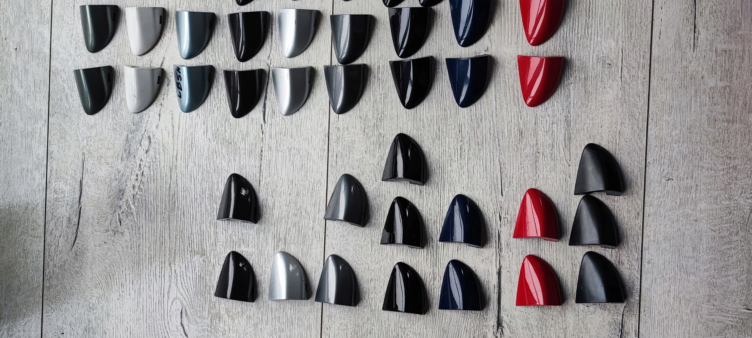 Право - кольори: зелений оливковий LB5S, білий LB9A, світло -синій LB5N, LC8Z Mocca, La7W Silver, Grey La7T, LC9X Black Metal, Ld5Q Granat Metal (я не впевнений у кольорі), Ly3d червоний