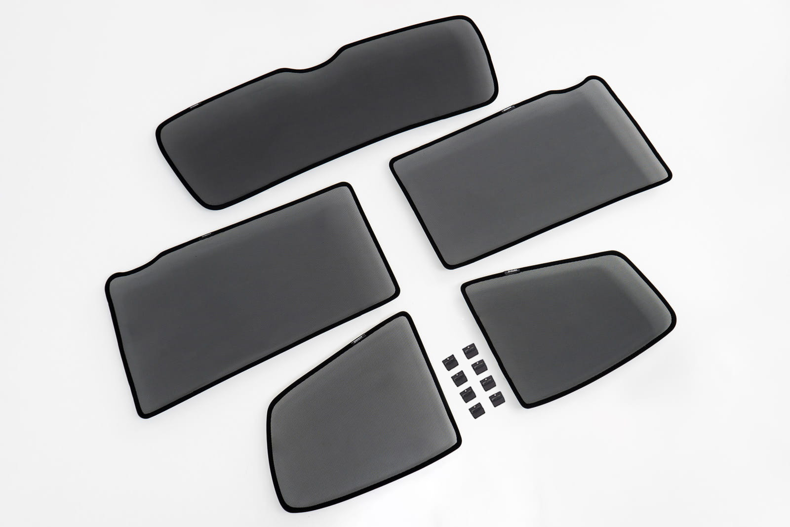 - матеріал: міцний матеріал з високою стійкістю до випромінювань у редаційному випромінюванні Штори (чотири для задніх вікон та одна для вікна заднього клаптя) + додаткові елементи кріплення