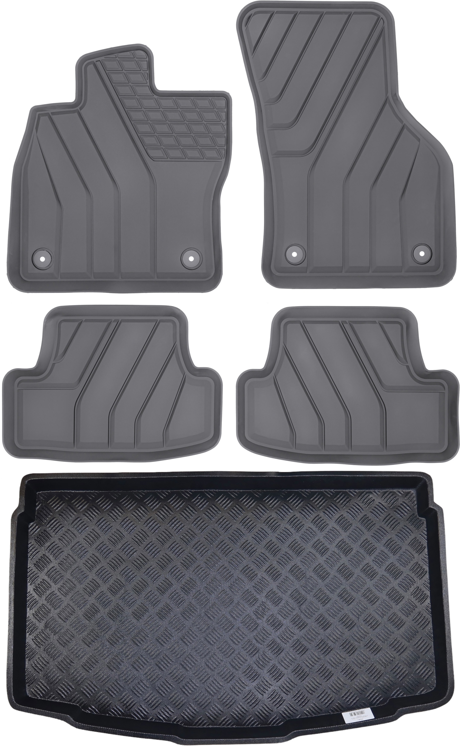 Глибокий рифлений малюнок допомагає утримувати бруд і воду на поверхні килимка, запобігаючи потраплянню розливів і бруду на підлогу автомобіля. Низ килимків покритий сіткою, яка стабілізує килимок і запобігає його зсуву під час руху. У набір також входить оригінальна система кріплення, яка забезпечує ще краще утримання килимків на місці.