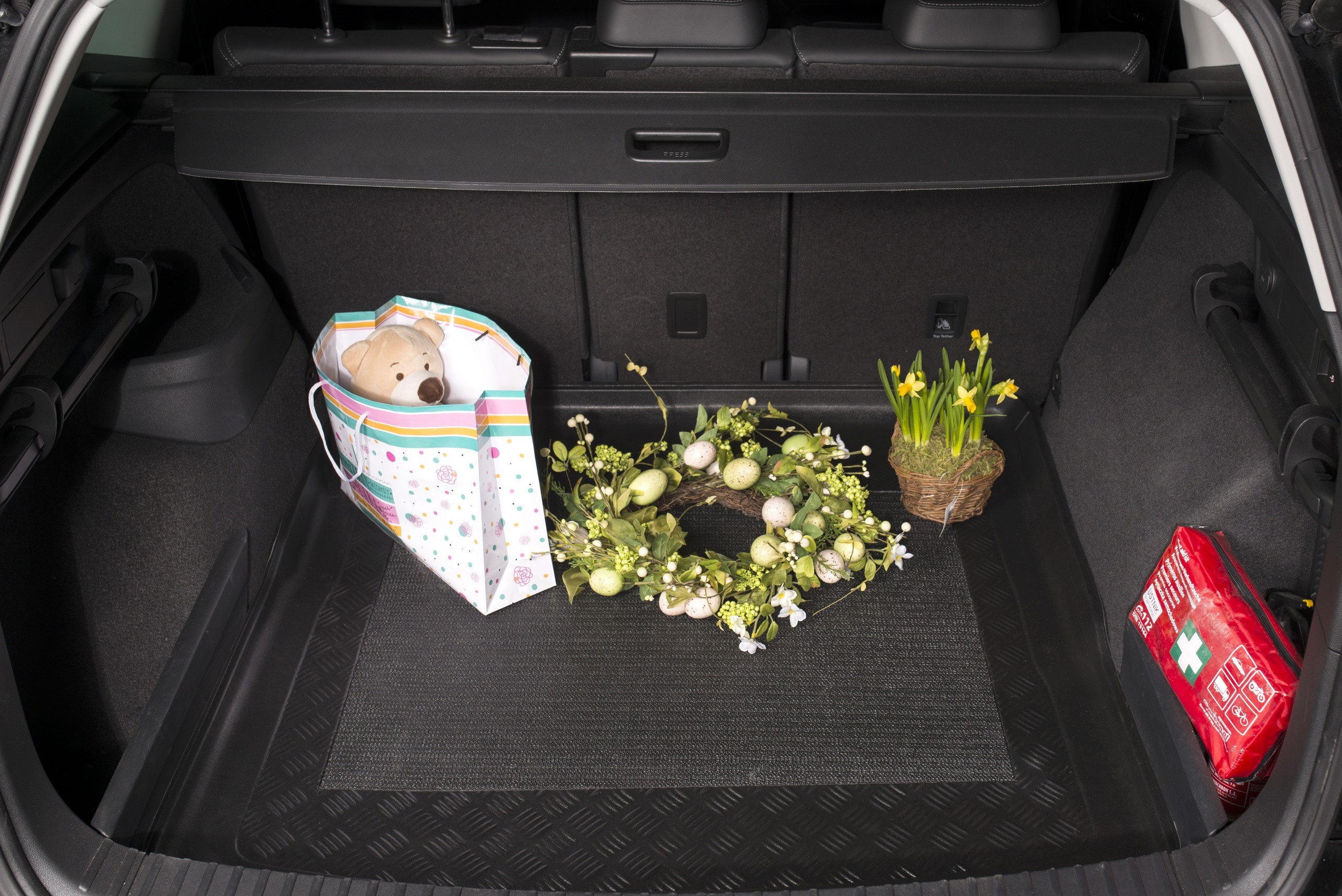 Пропонований вкладиш багажника (килимок) був точно розроблений відповідно до форми багажника, враховуючи не лише марку/модель чи версію кузова, але й тип обладнання, завдяки килимок ідеально поміщається в нішу багажного відділення. Килимок виготовлений з міцного та гнучкого пластику, який не містить шкідливих для здоров'я речовин, що забезпечує безпечне використання. Високий захисний комір навколо килима та стабільність його форми ефективно утримують воду та бруд, захищаючи оригінальний килим багажника від бруду. Гнучкий і легкий матеріал дозволяє легко класти килимок в машину та виносити з неї, наприклад, під час чищення, або згортати її для зберігання чи транспортування. Килимок розроблено таким чином, що дозволяє використовувати тримачі для ременівдля фіксації вантажу, розташованого на підлозі та стінках багажника, а також систему кріпильних рейок. У центральній частині килимка є протиковзкий килимок, який додатково захищає вантаж, що перевозиться в багажнику.