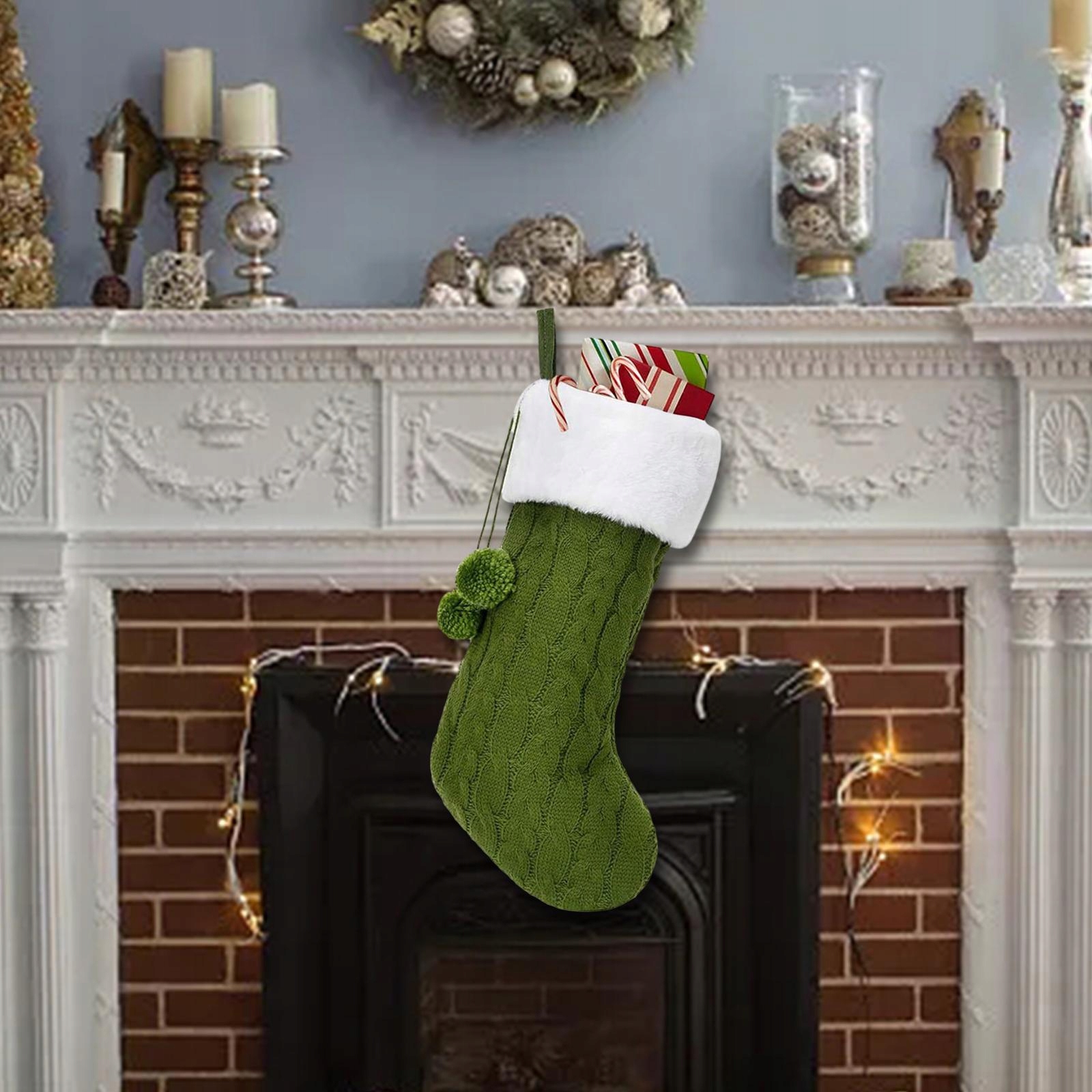 В'язане Різдвяна панчоха Вікно Прикраса будинку Камін висить зелений