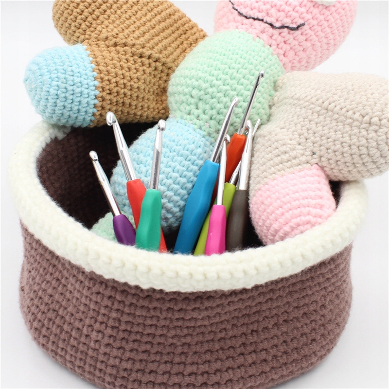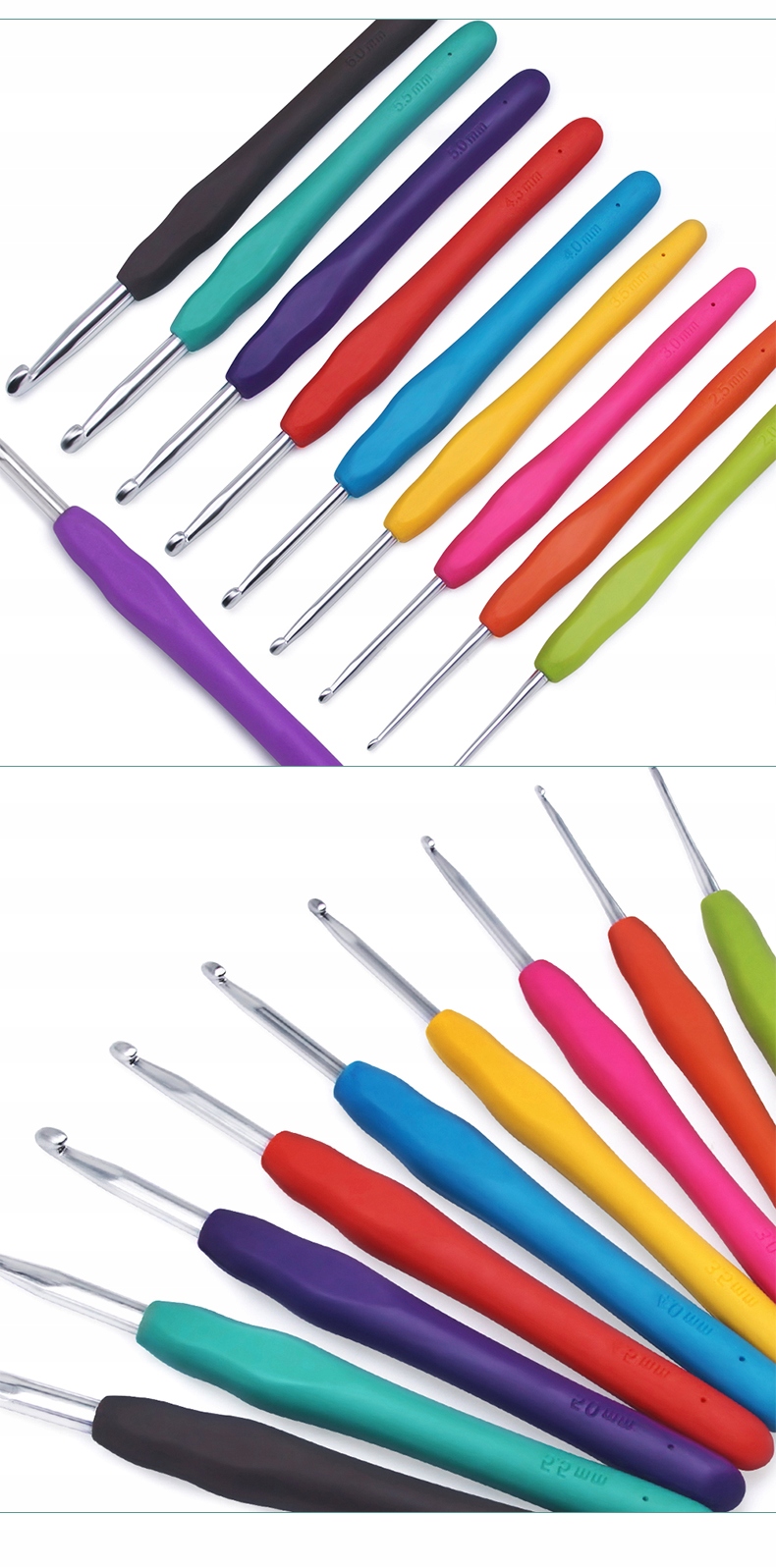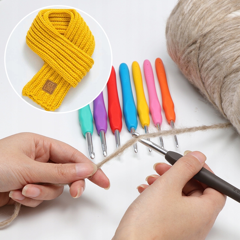 Набір алюмінієвих гачків, міцних гачків для в'язання, які надійно та зручно тримаються у руці завдяки гумовій ручці.