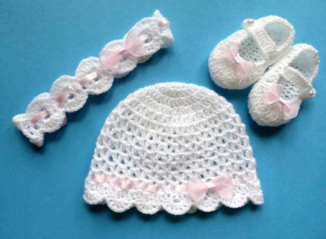 в'язані гачком шапочки, взуття, пов'язки, метелики, набори з 2-х, 3-х предметів