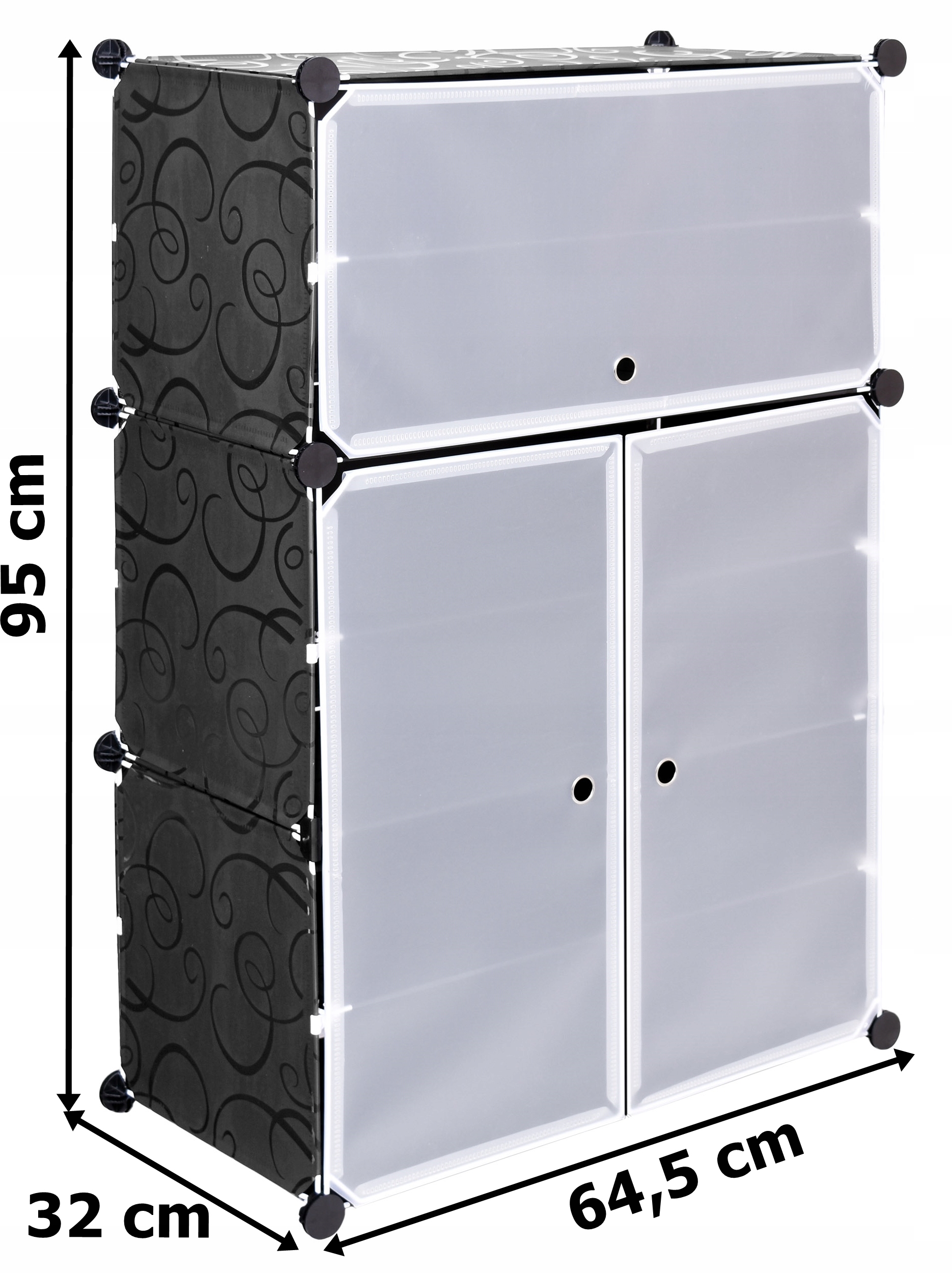 Модульна шафа RAKIA дозволить вам тримати порядок у своєму взутті. Захищає вміст камер від пилу, водонепроникний і легко миється. Невеликий розмір і модульна конструкція роблять модель ідеальним доповненням до вашого гардеробу. Шафа має цілих 6 полиць в які ви легко помістите велику кількість взуття або аксесуарів гардеробу. Кожна полиця виготовлена з металевого каркасу та водонепроникного матеріалу з ефектним малюнком. Збірка шафи проста і займає мало часу. Просто з’єднайте окремі полиці з’єднувачами з АБС-пластику. Модульна конструкція тумби RAKIA дозволить вам дати волю своїй уяві та сконструювати тумбу для взуття різної форми та розміру. Просто з’єднайте наступні модулі разом, щоб створити великі гардероби та тумби для взуття.