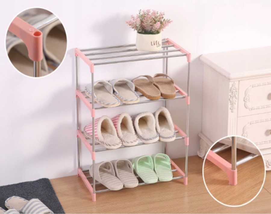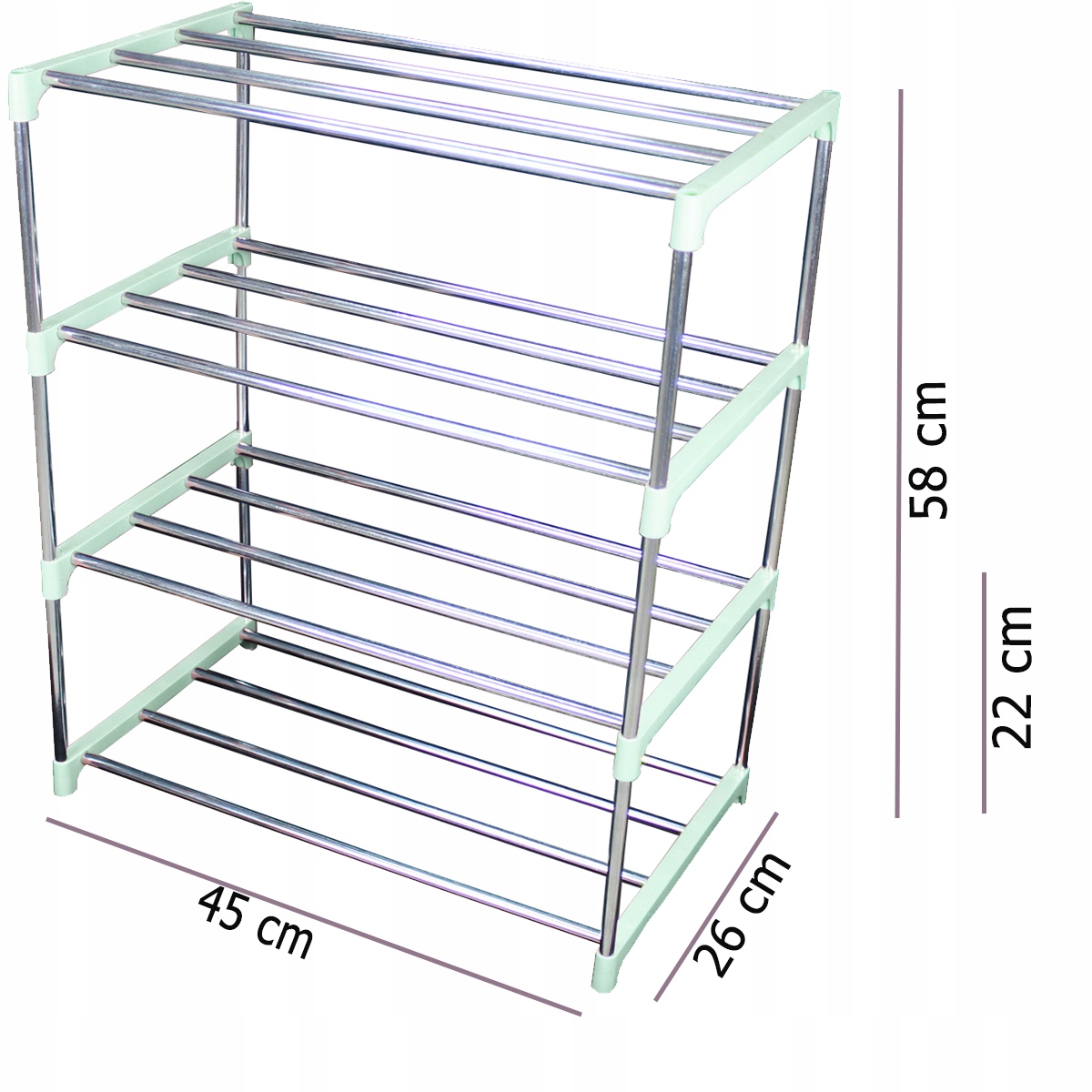 Практична 4-рівнева полиця для взуття зі сріблястого металу з порошковим покриттям.