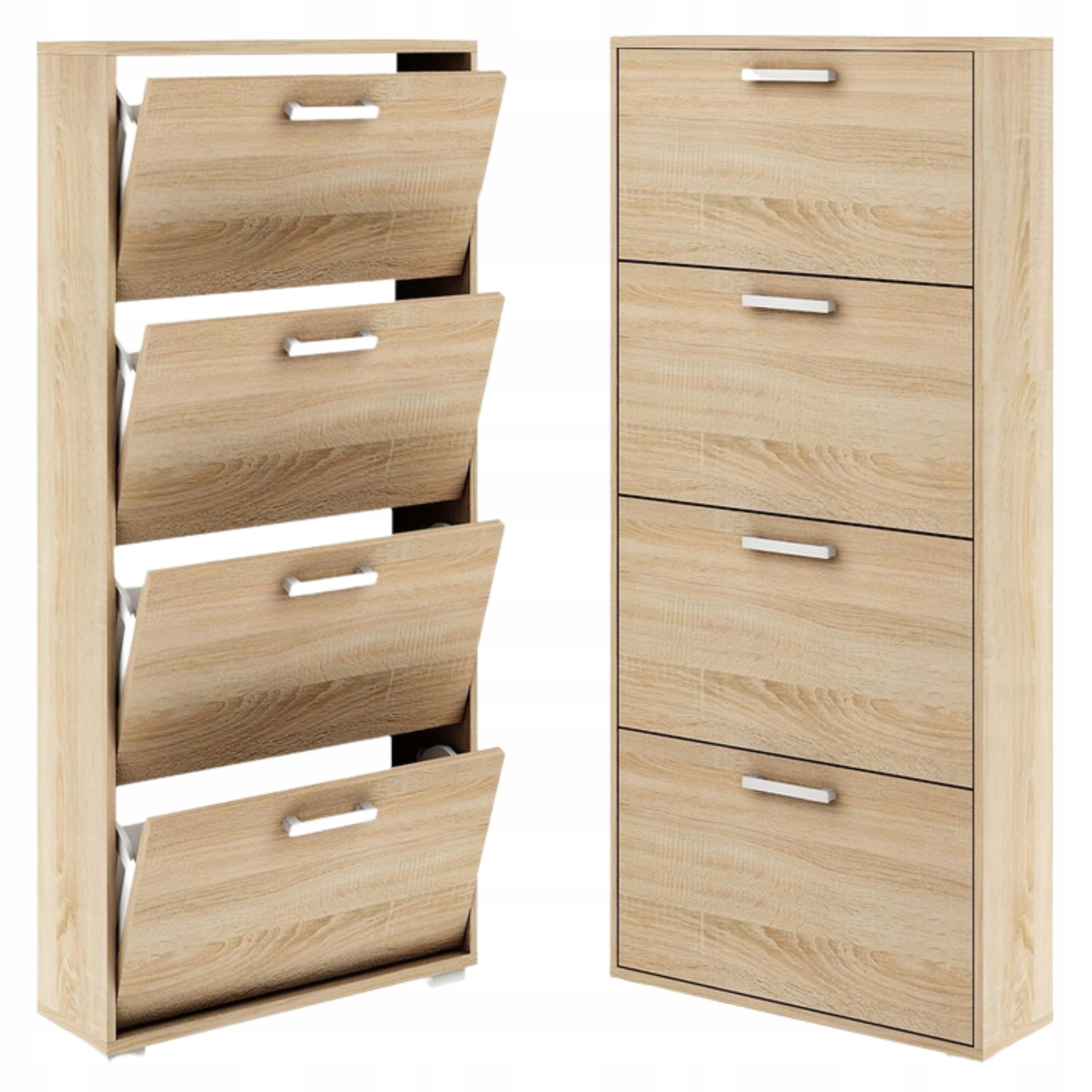 Чотири навісних відділення вміщають багато пар взуття. Шафа ідеально підійде в маленьку передпокій , але також у більшій, до якої ви можете підібрати інші меблі з нашої пропозиції. Сучасний стиль і елегантне оздоблення додадуть свіжості вашому інтер'єру .