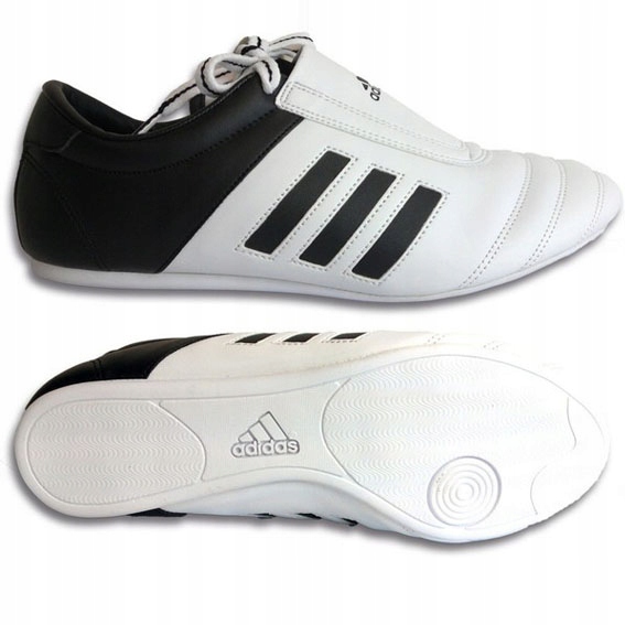 Взуття Adidas ADI KICK підходить як для тренувань, так і для суддівства в тхеквондо та карате, а також підходить для інших видів спорту в приміщенні. Взуття Adidas з ПУ користується популярністю завдяки своїй винятковій міцності та надійності. Взуття Adikick має три чорні смуги та чорний каблук.
