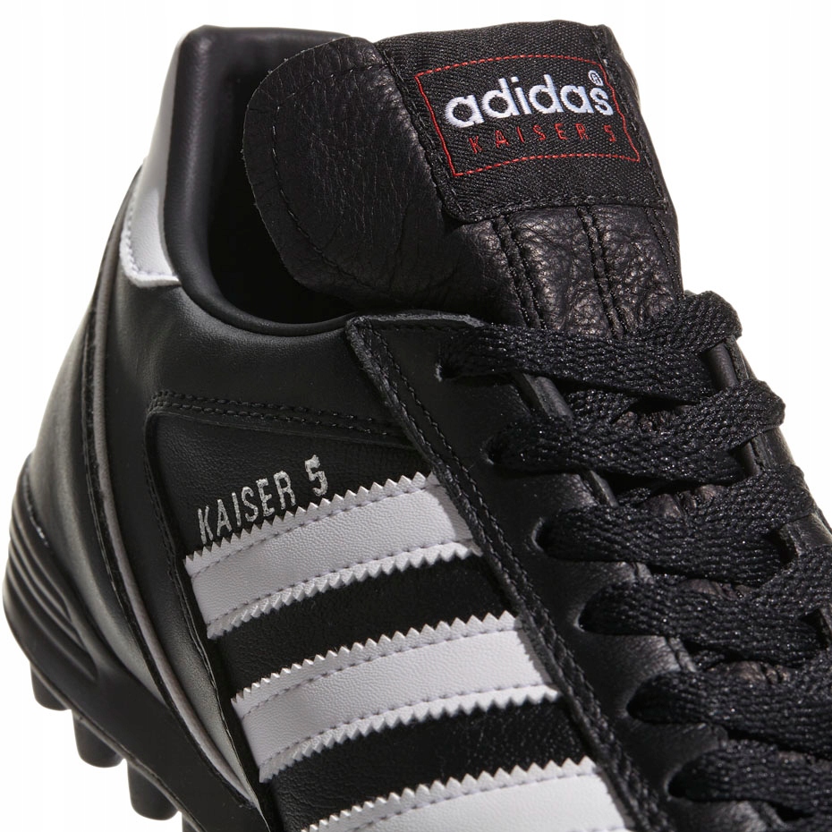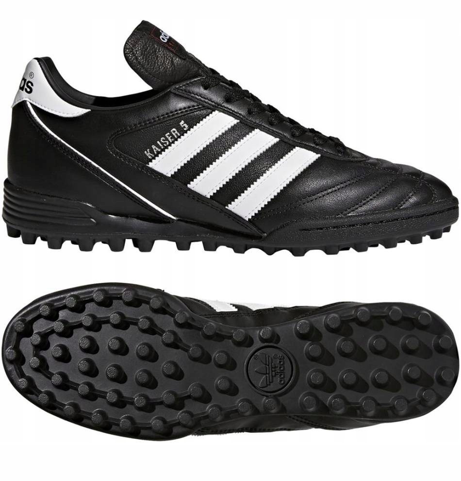 - Чоловічі туфлі Adidas Kaiser 5 Team — нижча версія футбольної моделі Mundial Team — мають гумову підошву, розроблену спеціально для матчів на твердих і штучних покриттях. Вони виготовлені з м'якої товстої зернистої шкіри; вони мають вставку з піни EVA, що забезпечує легкість, комфорт і підтримку.