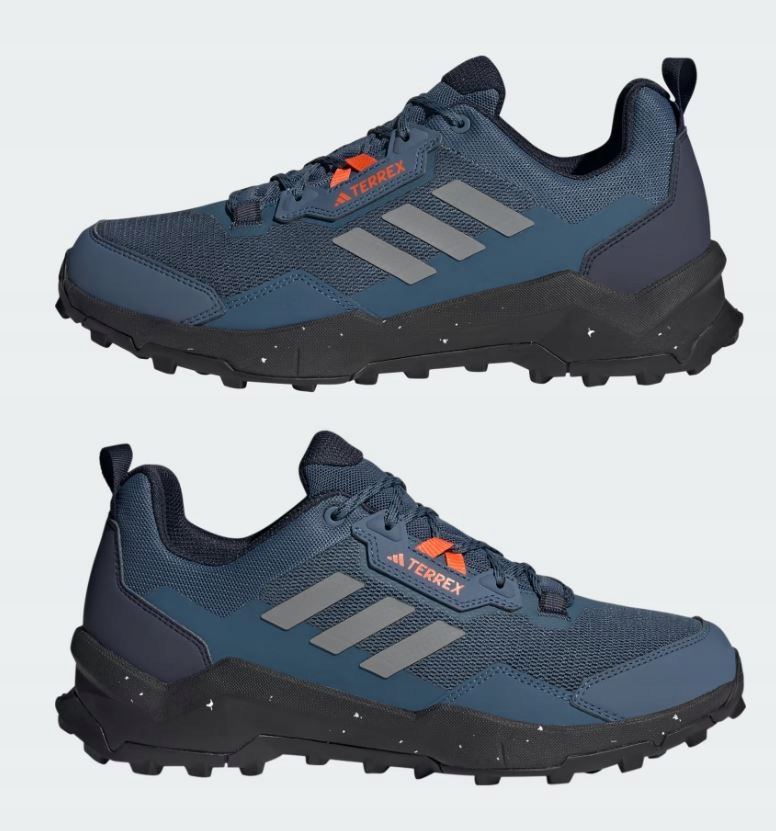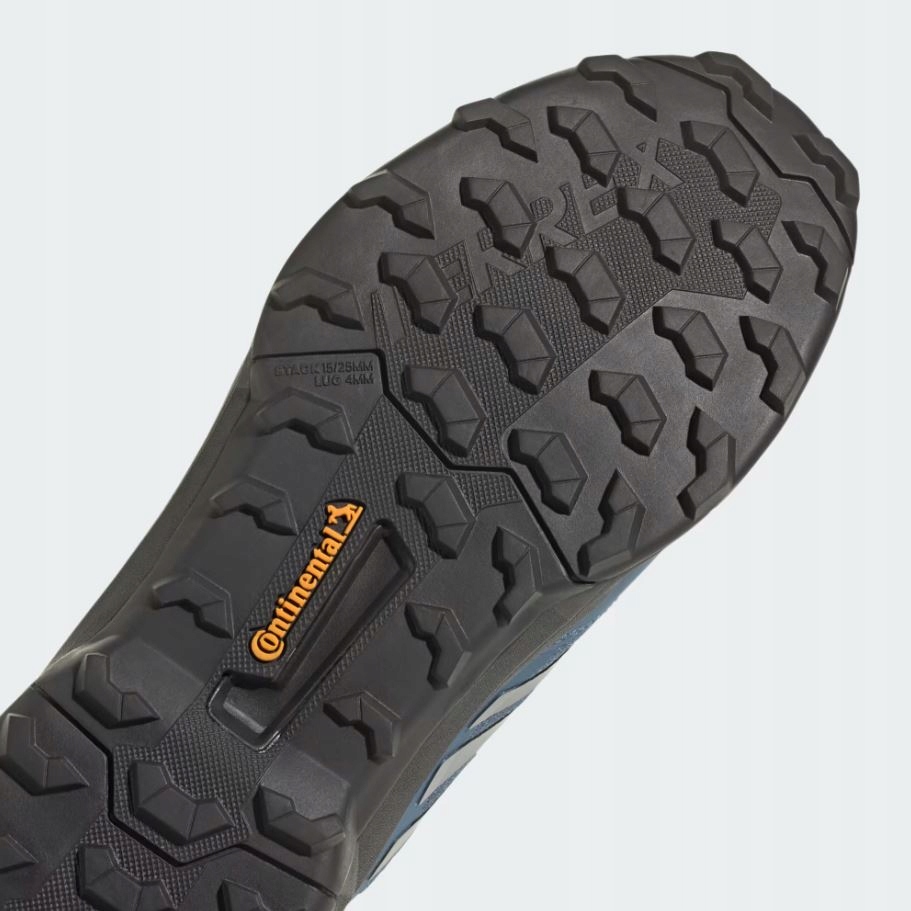 Adidas Terrex AX4 - міцне трекінгове взуття, створене для комфортного та впевненого пересування по різноманітній місцевості. Модель поєднує в собі міцний дихаючий сітчастий верх із міцним синтетичним посиленням у ключових зонах, що підвищує захист і стійкість до стирання. Приглушені темно-сині кольори в поєднанні з помаранчевими деталями надають їм сучасного зовнішнього вигляду. Найбільшою перевагою взуття є підошва Continental™ - вона гарантує відмінне зчеплення з мокрим камінням, брудом і брудом. Крім того, агресивний протектор допомагає підтримувати стабільність на нерівних доріжках, а м’яка амортизація забезпечує комфорт навіть під час довгих годин походів.