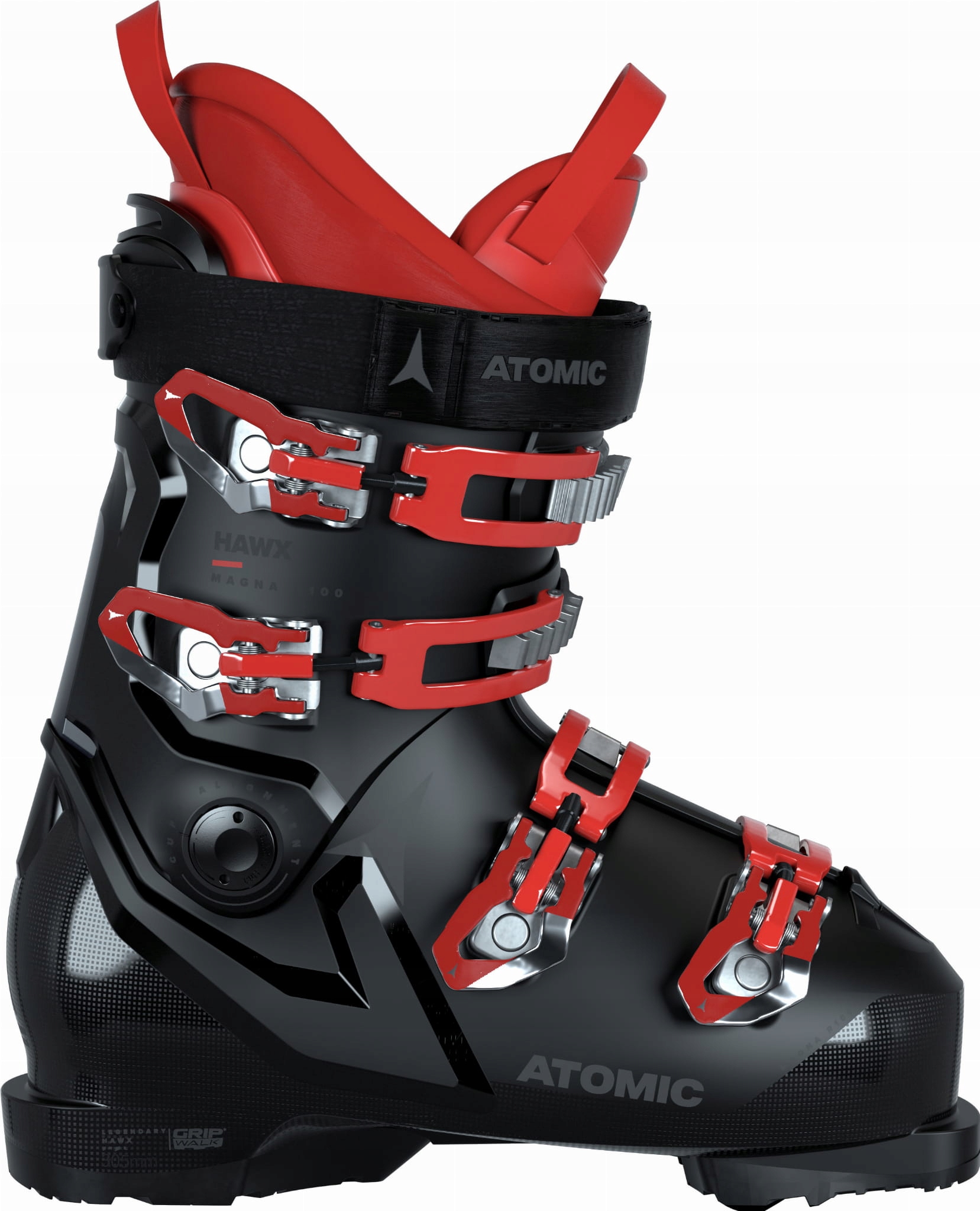 Atomic HAWX MAGNA 100 – одні з найм’якших черевиків у своєму класі, ідеальні для лижників середнього рівня, які люблять досліджувати все, що може запропонувати курорт. Черевики мають систему Easy Step-in і широкий язичок, що означає, що вони є безпроблемним і безболісним рішенням для лижників із ширшими стопами. Взуття має систему GRIP WALK