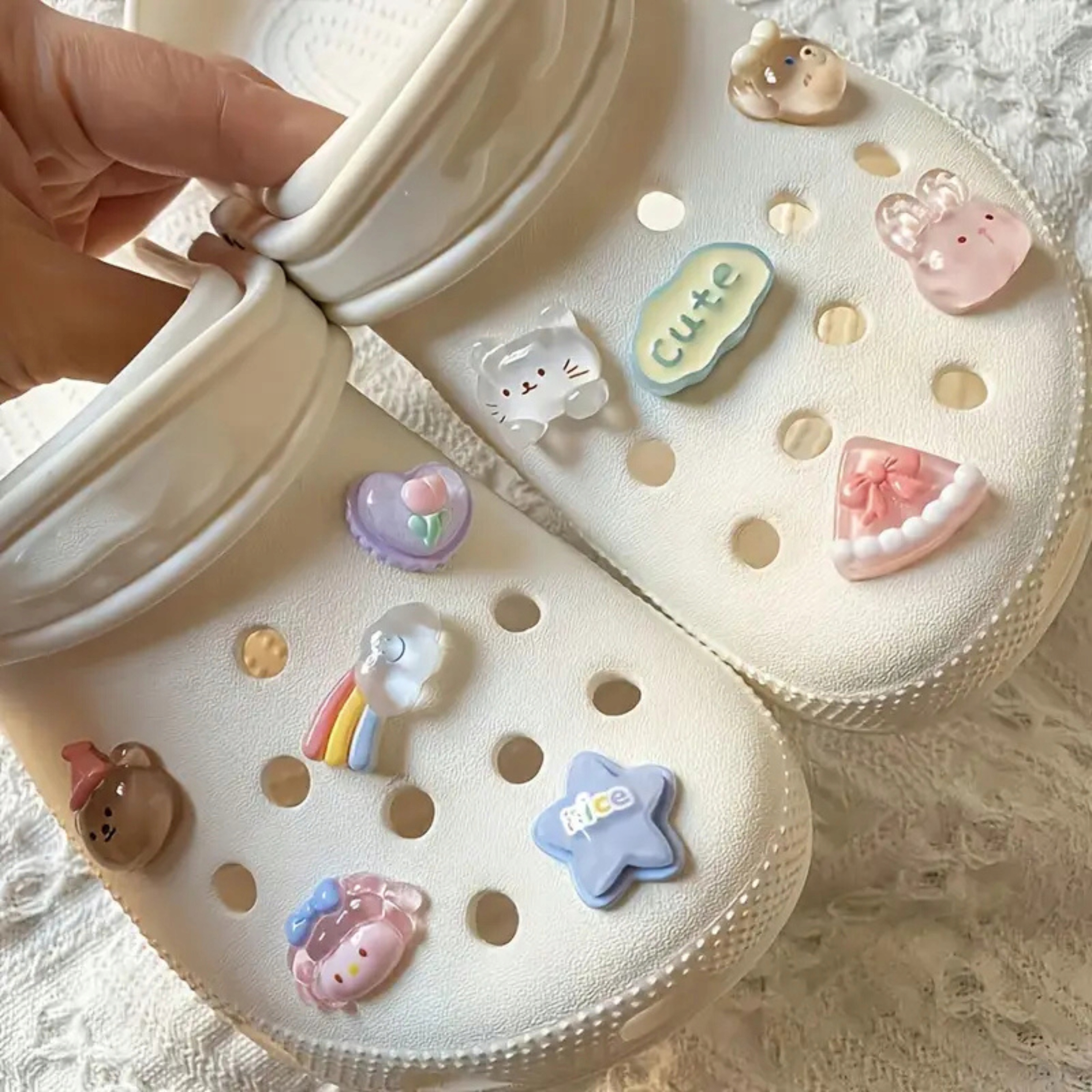 шпильки Crocs з пастелями, чарівні мотиви - ідеальний вибір для любителів делікатних та затишних акцентів. Цей набір 10 штифтів введе трохи тепла та позитивної енергії!