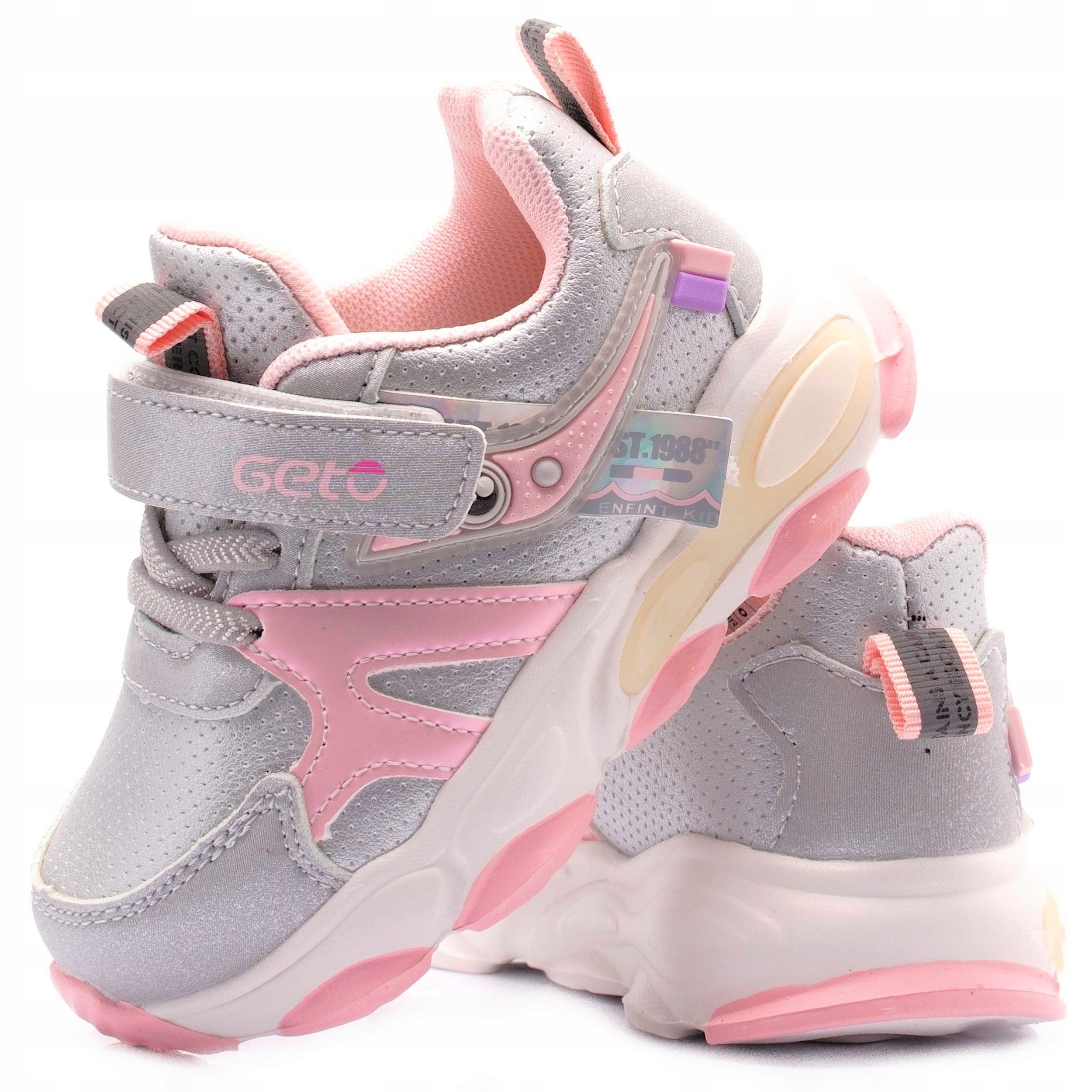 Дитяче спортивне взуття GELTEO. Виготовлений з високоякісних, міцних матеріалів, що забезпечують повітрообмін. Вони мають міцну нековзку підошву, яка забезпечує чудову амортизацію. Додатковою перевагою є профільована шкіряна устілка, обшита м’яким поролоном, що істотно впливає на відчуття комфорту при ходьбі.