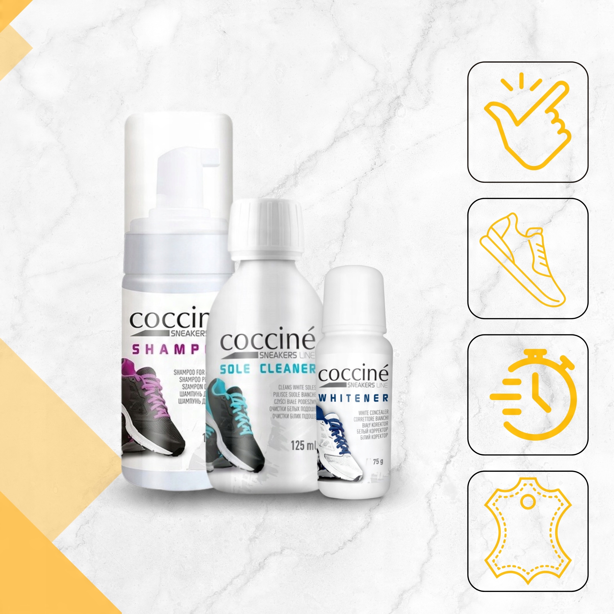Шампунь для кросівок кокцину - це інноваційний шампунь з пінопласту, створений для ефективного очищення піднімків спорту та повсякденного взуття. Завдяки спеціальній формулі, вона видаляє бруд з текстильних матеріалів, товстих тканин, велюру та замші -без потреби у воді!