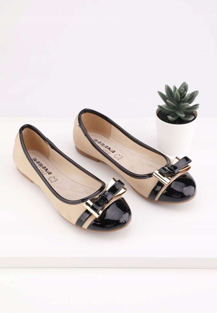 Бальеріни для дівчат. Круглий, лакований чарівним луком на передній частині взуття. Низьке верхнє сидіння перед щиколоткою, шкіряна вставка. Відмінна модель для сукні.
