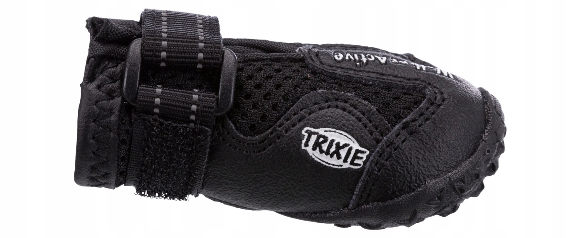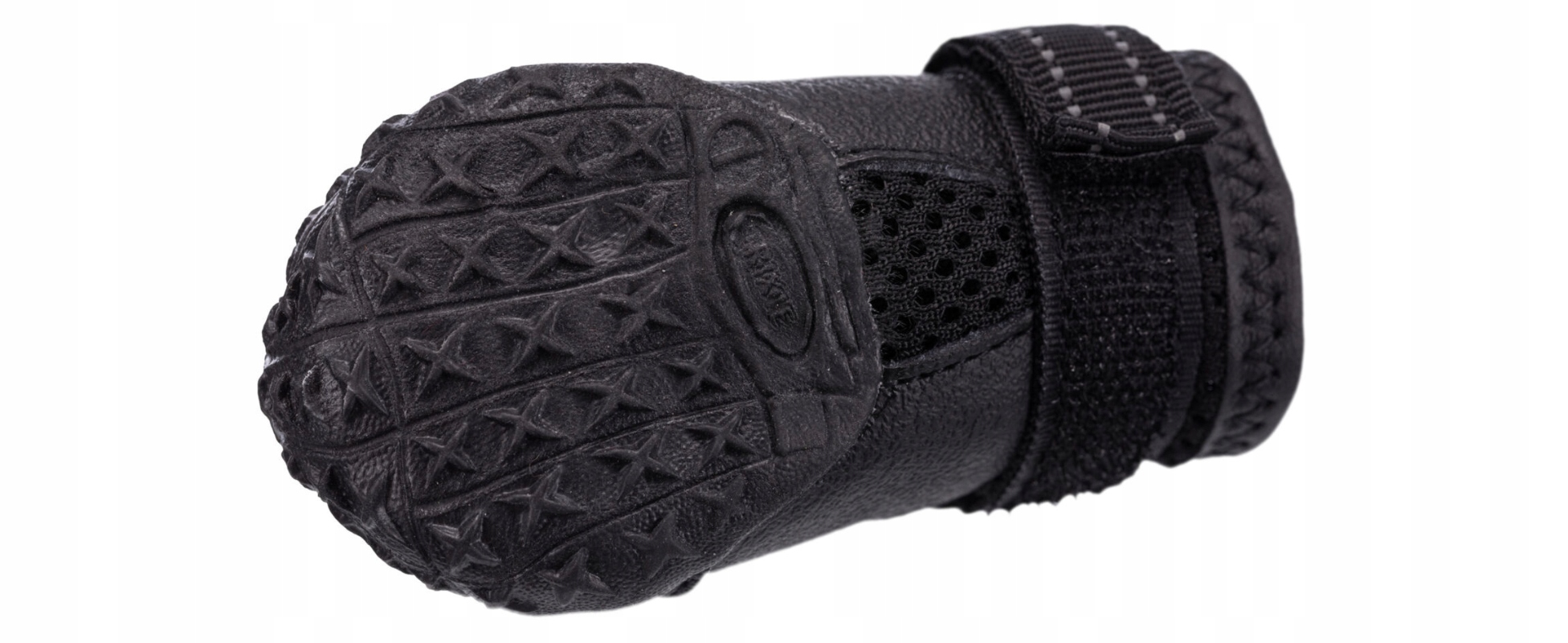 Стійка підошва b>виготовлений з ПВХ забезпечує високе зчеплення. Крім того, черевики застібаються двома липучками, що значно полегшить їх надягання вашій собаці та ускладнить зісковзування взуття під час прогулянки. Більше того, ремені на липучках містять відбиваючі смужки, за якими вам буде легше помітити свого улюбленця в темряві.