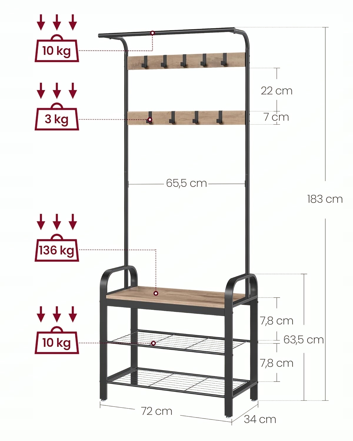 Підставка має 9 гачків для одягу . Гачки можуть бути демонтовані.