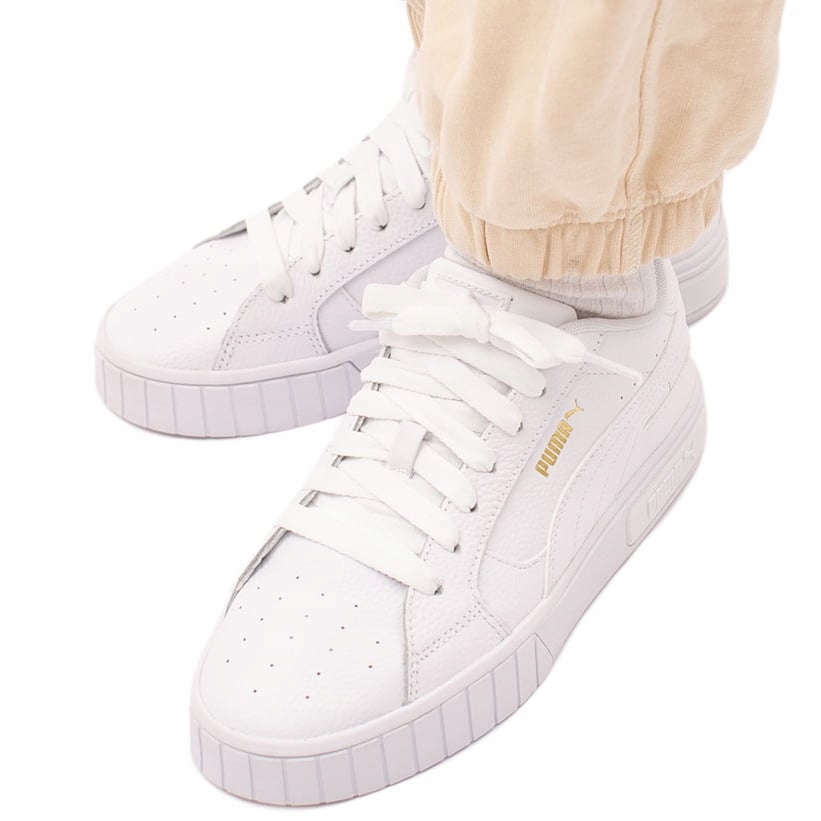 Жіноче взуття Puma Cali Star - це взуття класичного спортивного силуету. Верх з гладкої шкіри. Гумова проміжна підошва гарантує оптимальний комфорт і зчеплення, а також додатково декорована Puma Formstrip. Все це збагачено золотими деталями на бічній панелі та каблуці. Біле взуття Puma Cali Star призначене для щоденного використання.