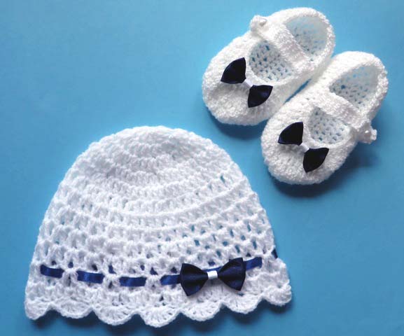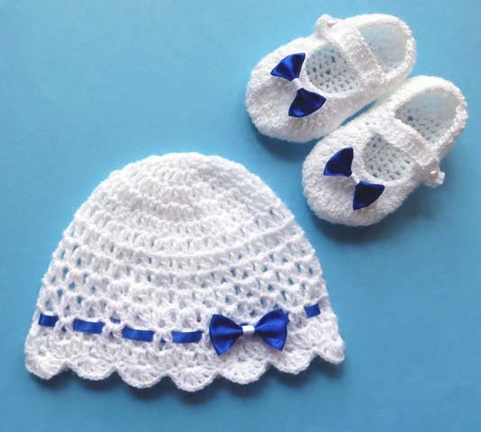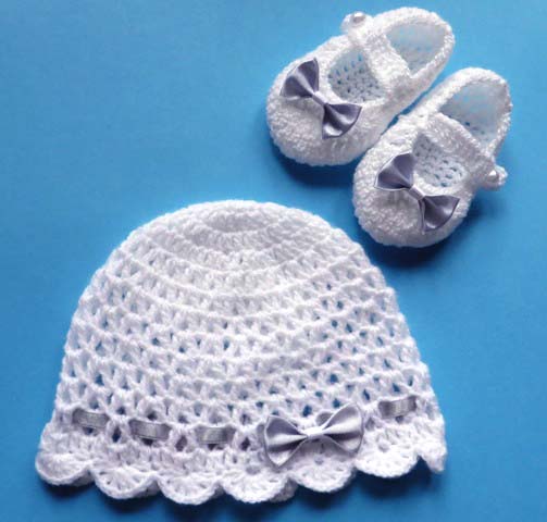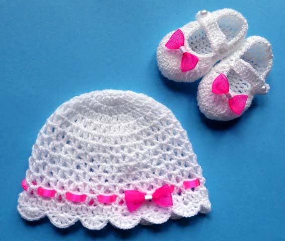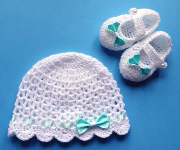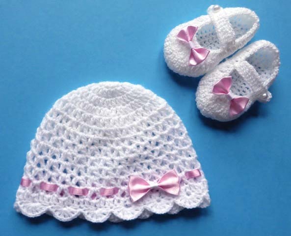 Набір гачком: Cap+взуття можна зробити в будь -якому кольорі пряжі та добавок - з атласними (атласними) або шифоновими (тюль) луками.