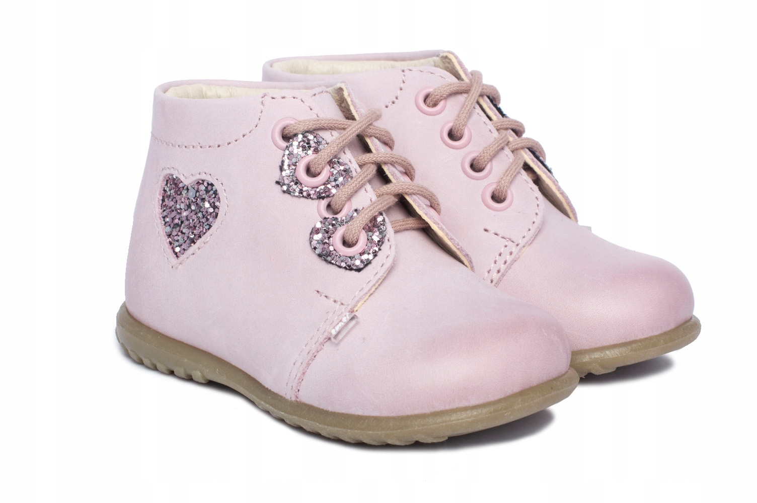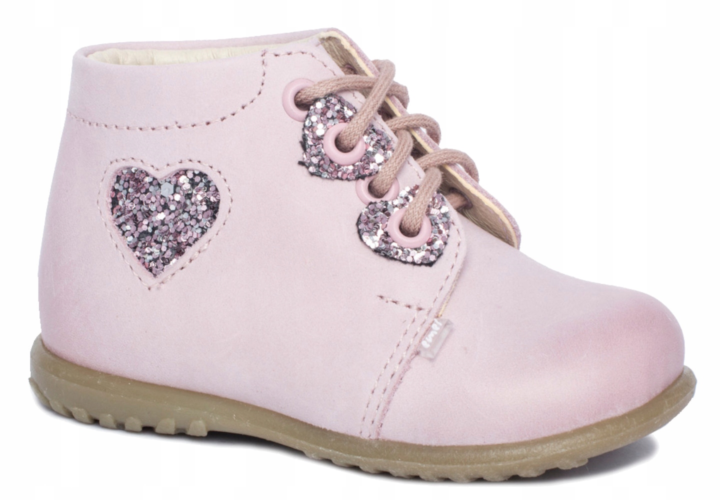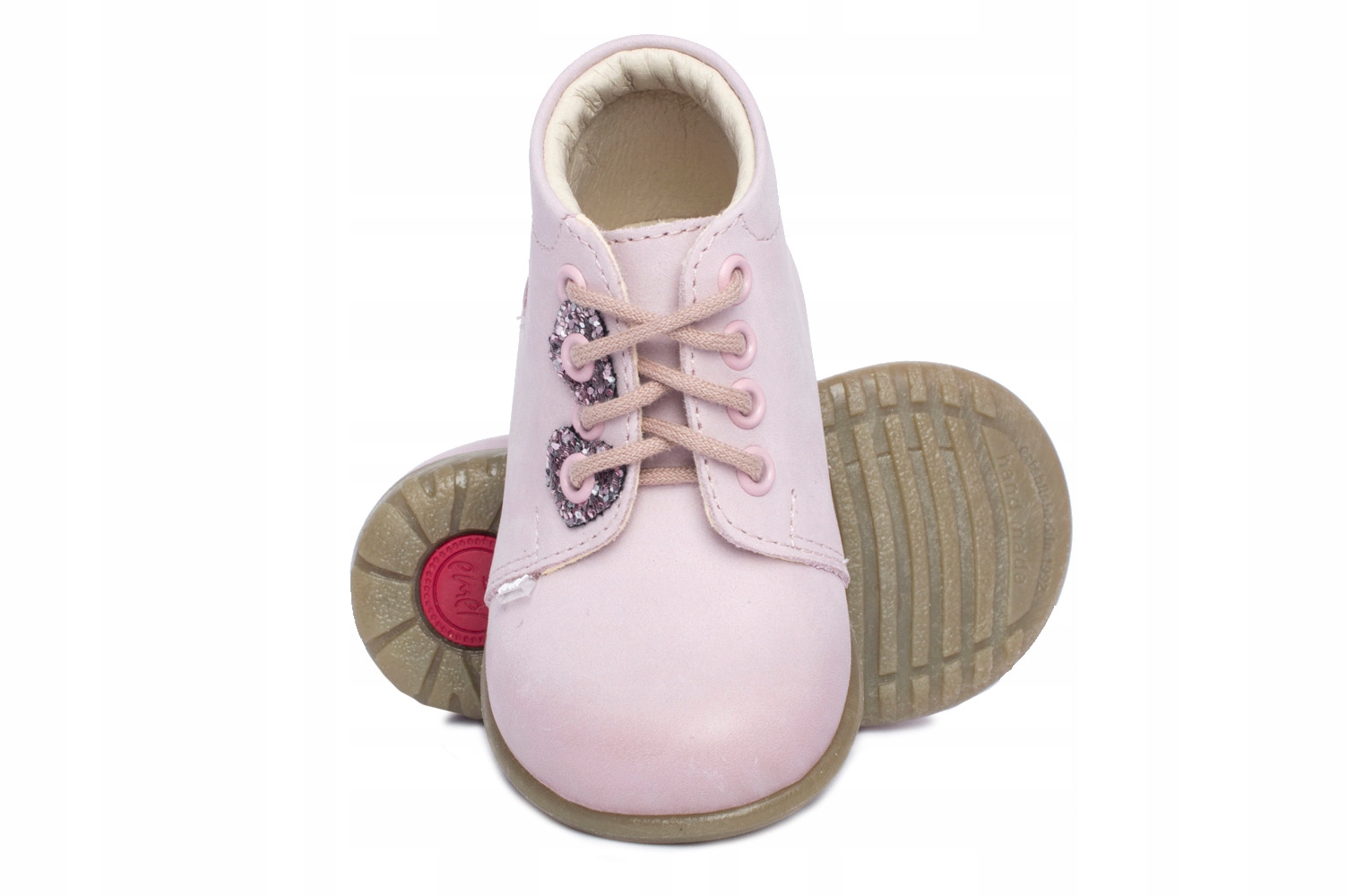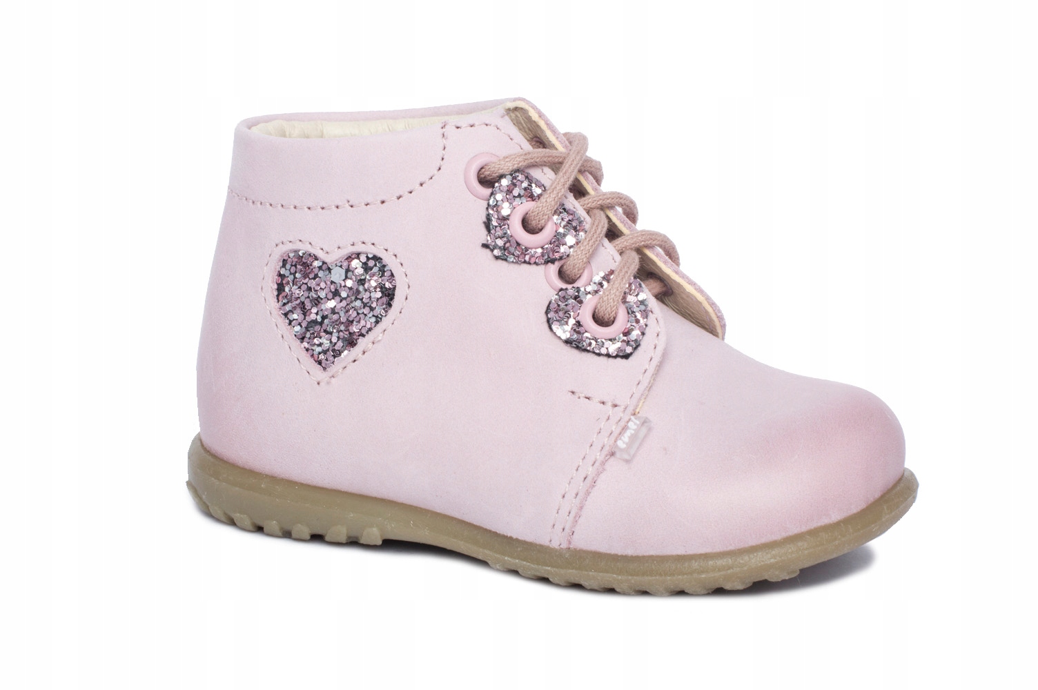 Симпатичні профілактичні туфлі від Emel з блискучим сердечком для дівчаток. Виготовлений повністю з високоякісної натуральної шкіри, завдяки чому ніжні ніжки малюка забезпечують здорову вентиляцію та не викликають потертостей