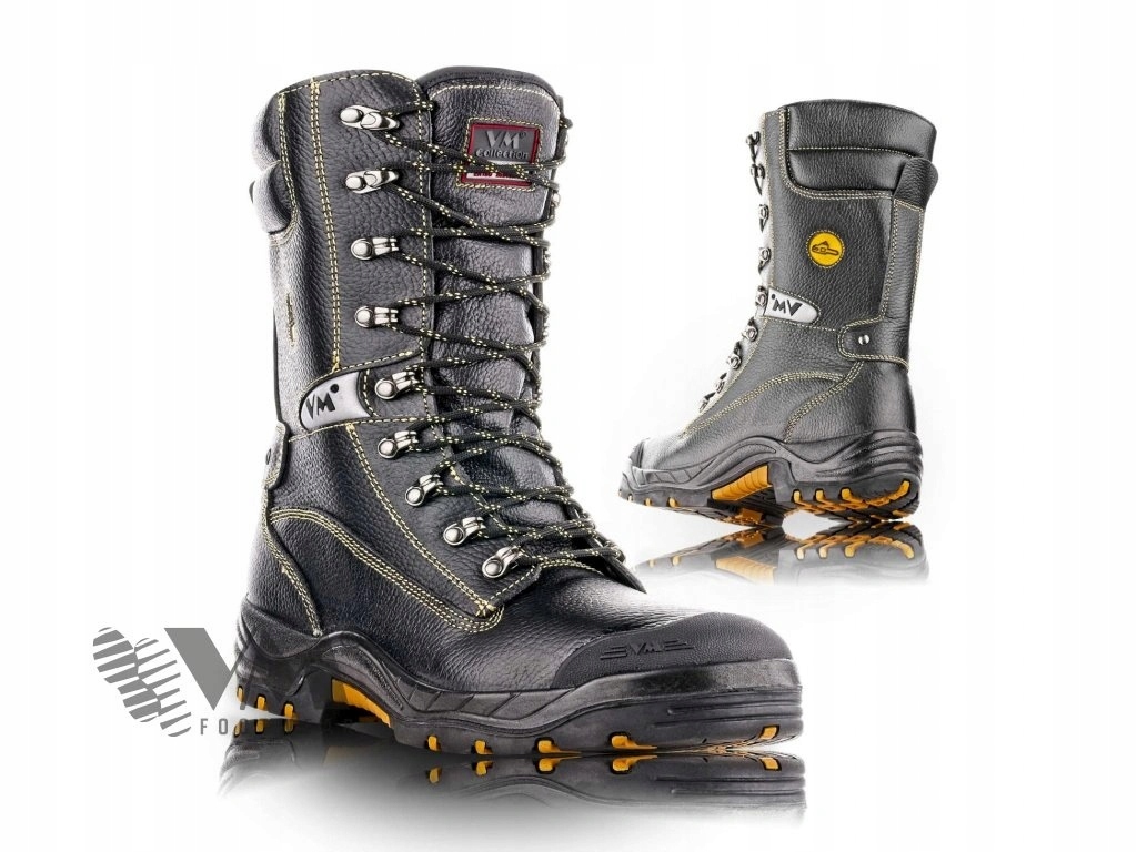Високі захисні робочі черевики VM Belfast S3 WR HRO SRC CI ANTICIUT LEVEL 1 - зі сталевим носком, антиперфораційною сталевою вставкою в підошві, гідрофобна шкіра.