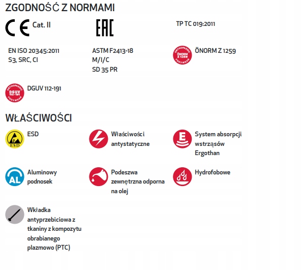 Світло, зручне та привабливе безпечне взуття з найвищим класом захисту S3 та гідрофобними властивостями. Верхній з поліуретану, виготовлений з подвійної шкіри та вентильованої внутрішньої підошви, пропонує високу безпеку та ергономіку. Основна олія, стійка до поліуретану, забезпечує виняткову адгезію, а алюмінієвий підйомник та обробка плазми.