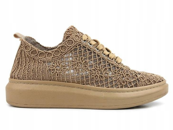 Жіноче взуття польського бренду Artiker виготовлене з високоякісної мереживної тканини коричневого кольору.
