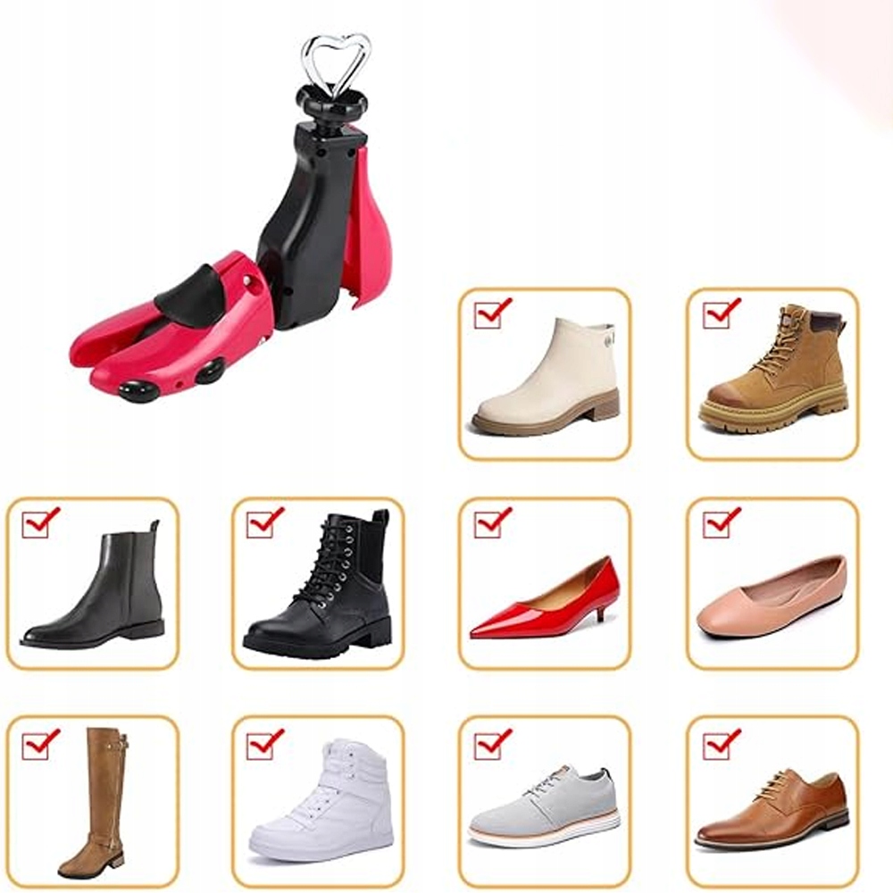 Професійні аксесуари для догляду та примірки взуття! У набір входять два регульованих розпорки, зручний ріжок для взуття та сумка для зберігання. Завдяки можливості регулювання довжини та ширини набір ідеально адаптується до різних стилів взуття, допомагаючи підтримувати форму та подовжувати термін служби.