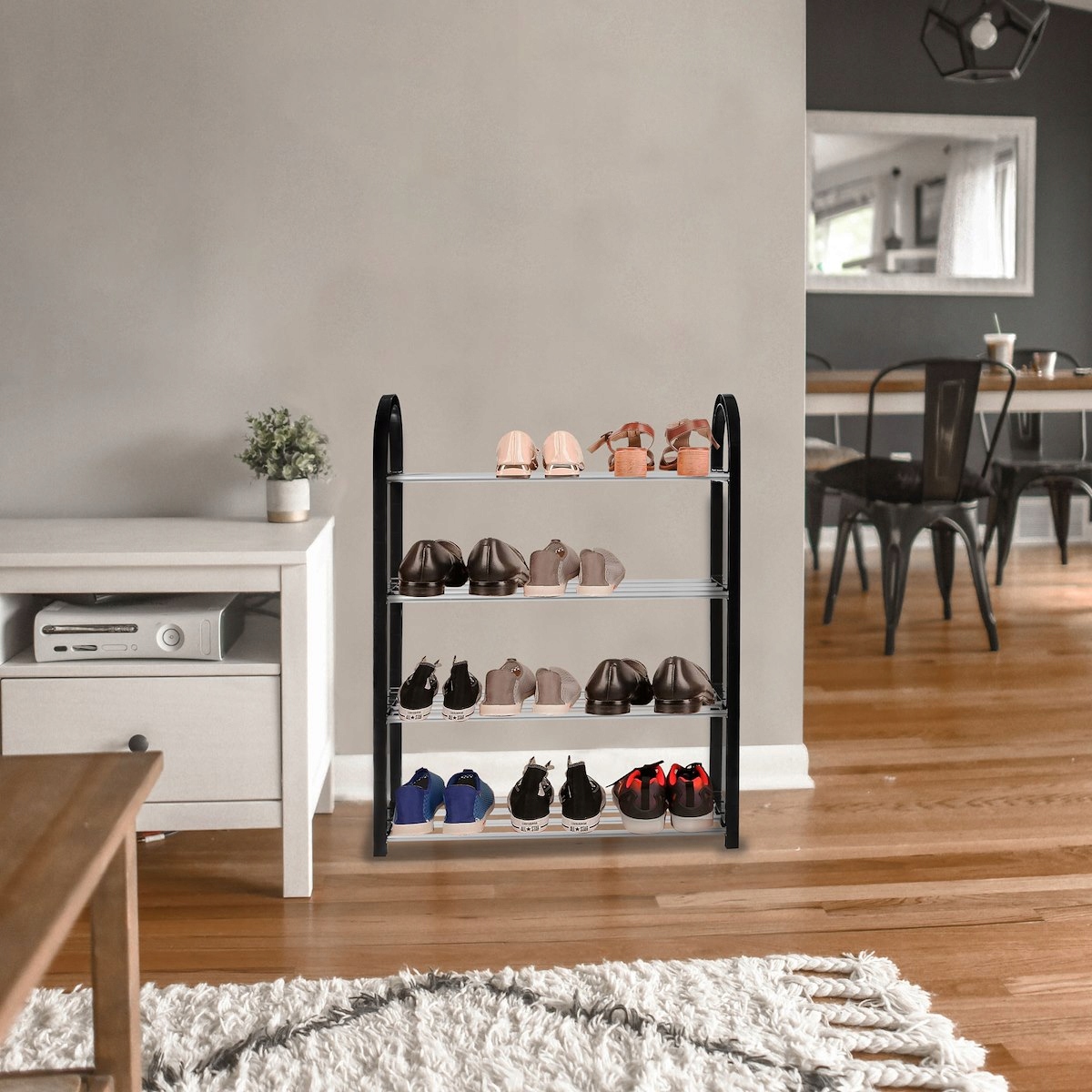 взуттєва підставка бренд springos® , виготовлена з твердого металу, - це незамінне рішення для тих, хто цінує замовлення та витонченість у зберігання взуття. Розроблена для максимальної функціональності, ця металева стійка пропонує чотири рівні, забезпечуючи багато місця для зберігання взуття в одному компактному місці.