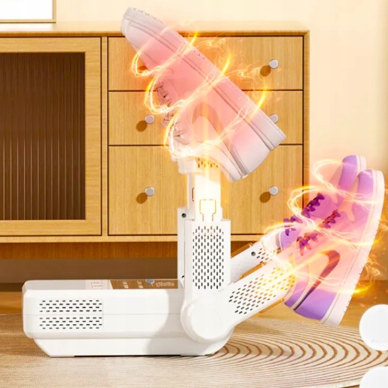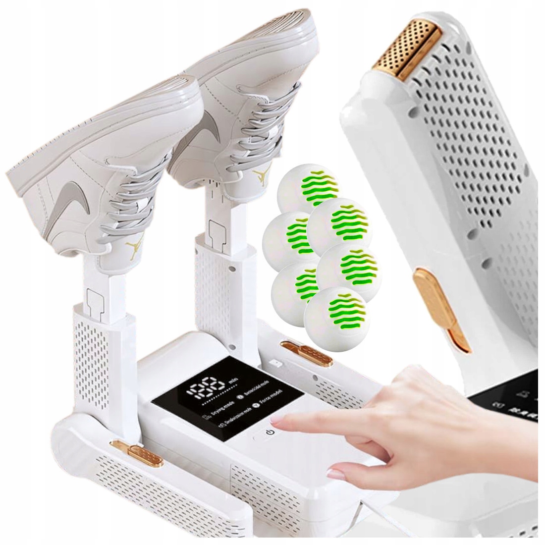 Сучасна сушарка 4in1 є ідеальним рішенням для швидкого видалення вологи з взуття та рукавичок. Завдяки функції УФ -стерилізації, регульованих зброї 1800 ° та таймеру, він забезпечує не тільки сухе, але й гігієнічне та свіже взуття.