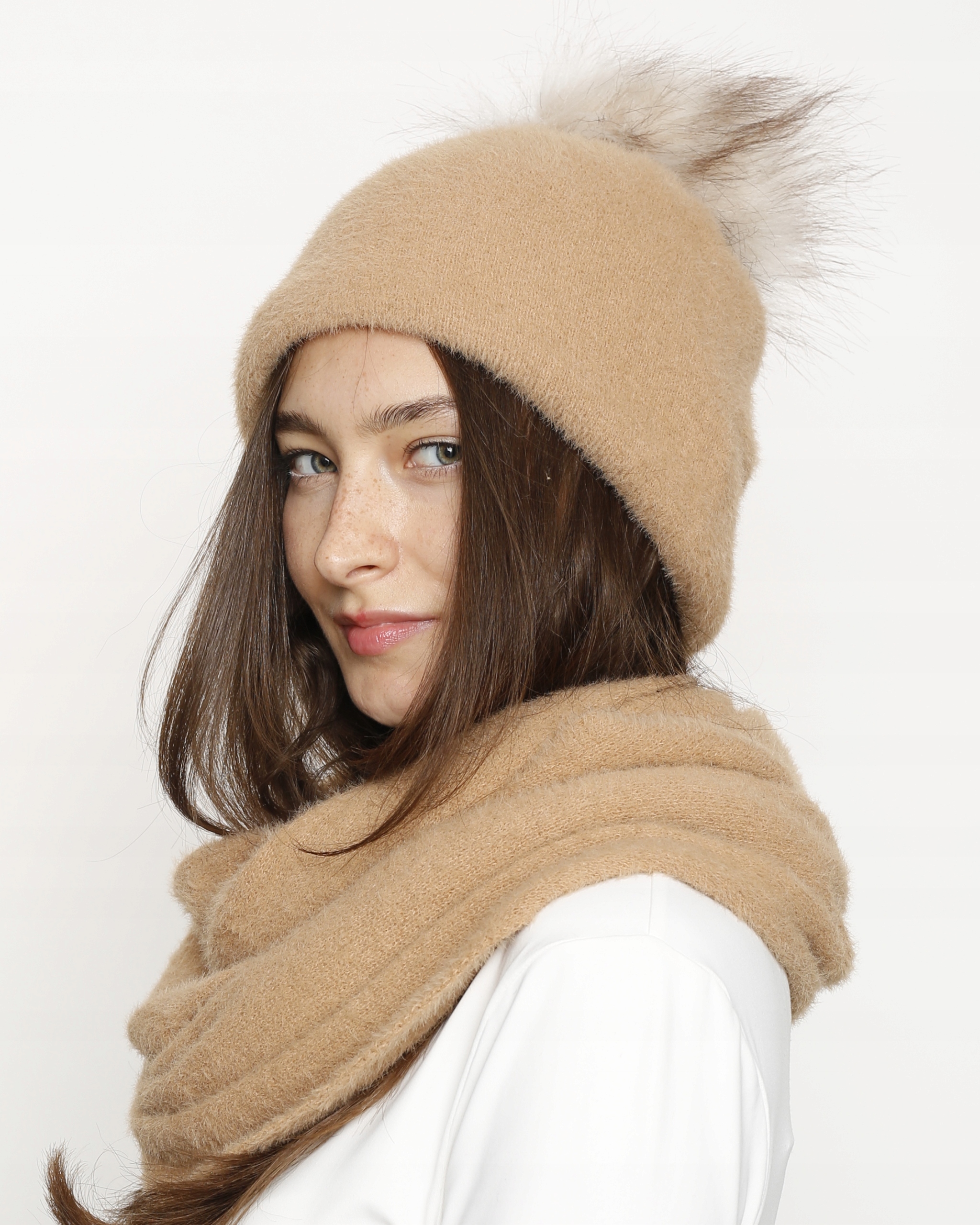 W# КОМПЛЕКТ ШАПКА з помпоном + ДИМОХІД " АЛЬПАКА "